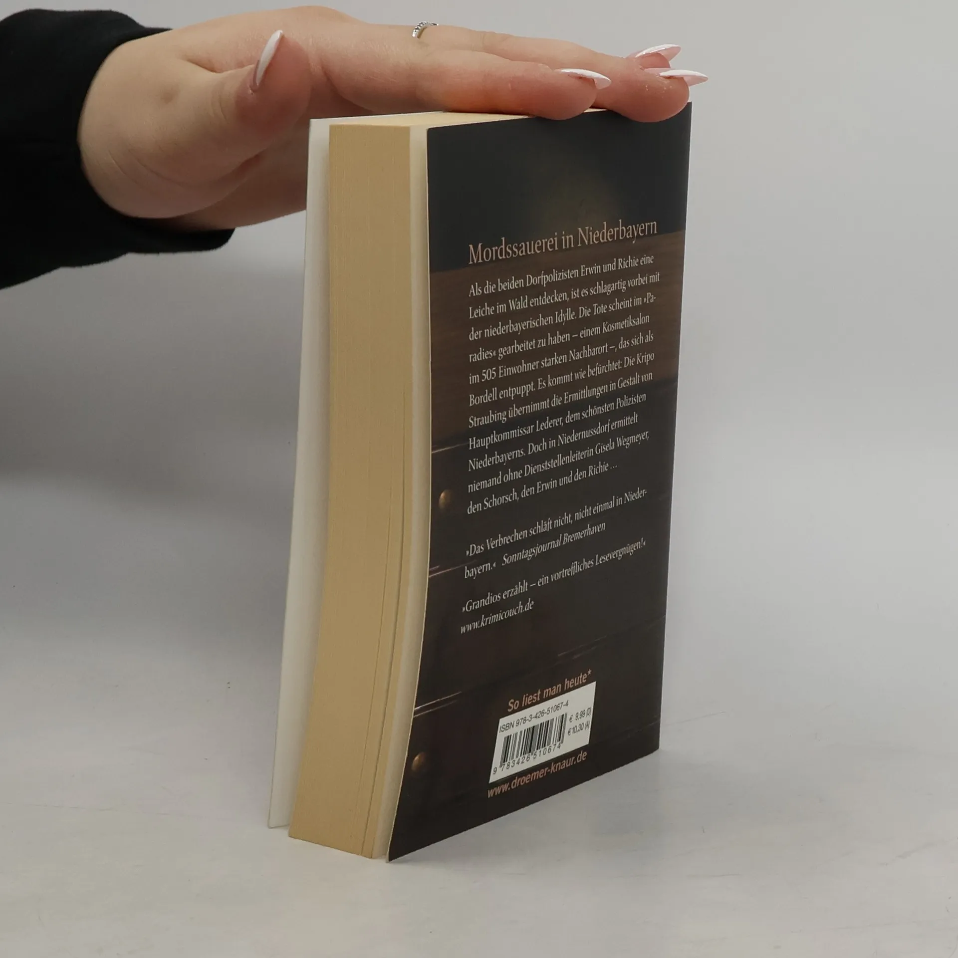 Das kleine Örtchen Niedernussdorf wird aus seiner beschaulichen Idylle gerissen, als die beiden Polizisten Erwin und Richie eine tote Frau im Wald entdecken. Der ewig bekiffte Richie will mit einem Mord nichts zu tun haben und die Leiche in die Nachbargemeinde verfrachten. Sollen die sich doch damit herumschlagen! Doch Erwin, ein geistiger Tiefflieger, meldet die Tote, pflichtbewusst. Dienststellenleiterin Gisela Wegmeyer benachrichtigt ihrerseits - wenn auch widerwillig - die Mordkommission in Straubing. Und es kommt wie befürchtet: Hauptkommissar Lederer ermittelt. Seine Markenzeichen: abgewetzter Ledermantel, Cowboystiefel aus Straußenleder und Pornoschnauzer – der schönste Polizist Niederbayerns, seiner Meinung nach. Mit seinen unnachahmlichen Ermittlungsmethoden verbreitet er Angst und Schrecken in der Bevölkerung. Jeder potenzielle Mörder soll wissen, dass mit ihm nicht zu spaßen ist! Soll die Tote doch im »Paradies« gearbeitet haben, einem als Kosmetiksalon getarnten Bordell voller rumänischer Edelnutten. Doch auch Gisela greift schließlich zusammen mit den Frauen Niedernussdorfs zu Methoden, die an Bauernschläue und Hinterfotzigkeit nicht zu überbieten sind...