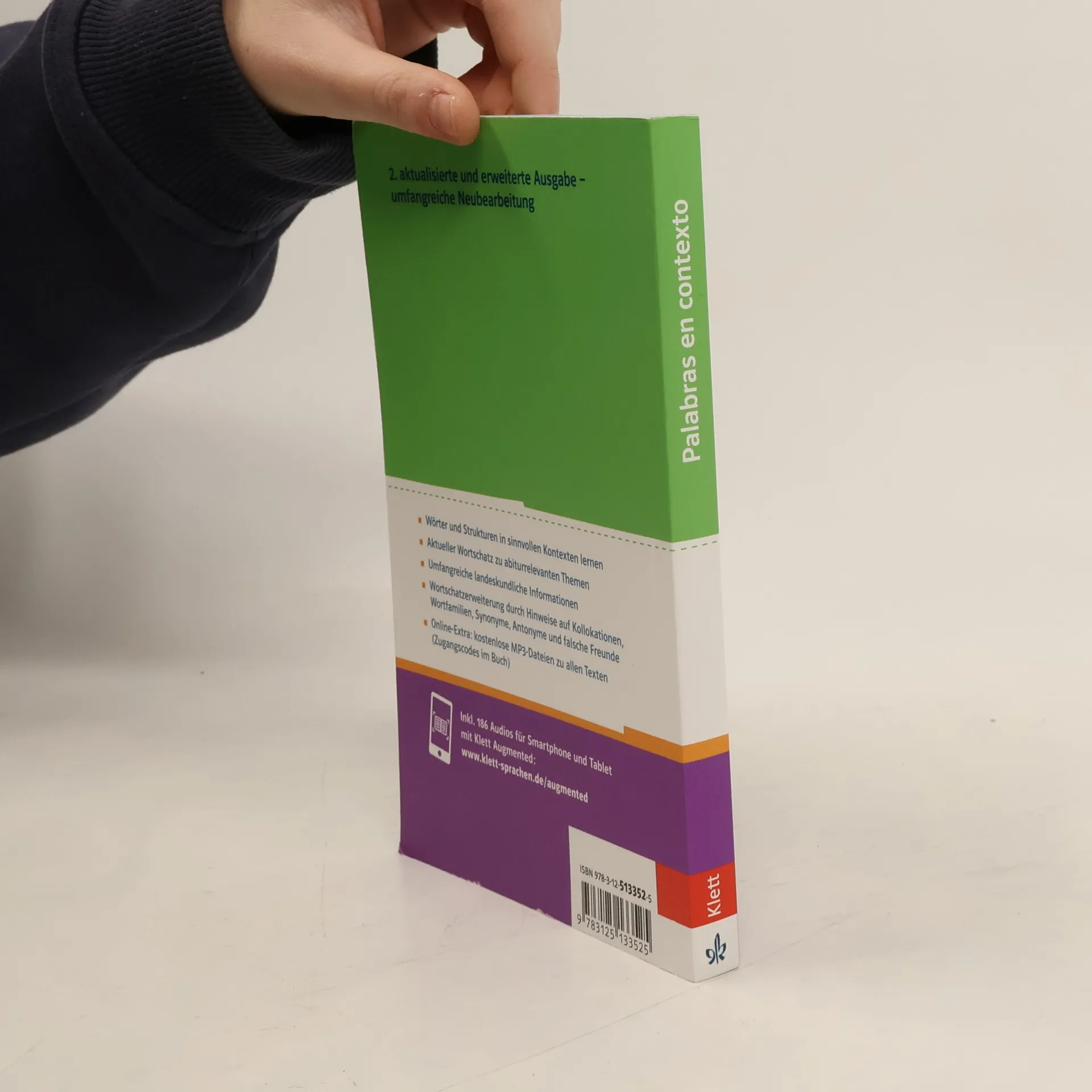 Thematischer Wortschatz Spanisch inklusive landeskundlicher Texte zu Spanien und Lateinamerika für Schüler der Oberstufe. Die Vorauflage wurde in BA 7/09 angezeigt. Mit der jetzigen Ausgabe liegt eine überarbeitete Fassung vor, die deutliche Erweiterungen aufweist. So wurden neue Kapitel hinzugefügt, um eine klarere Trennung zwischen Abschnitten zu Spanien und solchen zu Lateinamerika zu erreichen. Themen der 13 Kapitel sind u.a. Geografie, Geschichte, Politisches System, Ökonomie, Gesellschaft, Kultur. Alle Doppelseiten sind derart gestaltet, dass die linke Seite unter Hervorhebung des Lernwortschatzes einen landeskundlichen Text birgt. Auf der rechten Seite ist der Lernwortschatz tabellarisch aufgelistet, mit deutscher Übersetzung, Synonymen/Antonymen, Hinweise auf "falsche Freunde" sowie Bezüge zu verwandten Vokabeln im Englischen. Die Vorauflage kann weiterlaufen, wegen der nicht geringen Änderungen ist es jedoch wünschenswert, die neue Ausgabe dazuzustellen. "Grundwortschatz" (Stark; ID-A 28/11) ist viel knapper angelegt und enthält keine landeskundlichen Texte