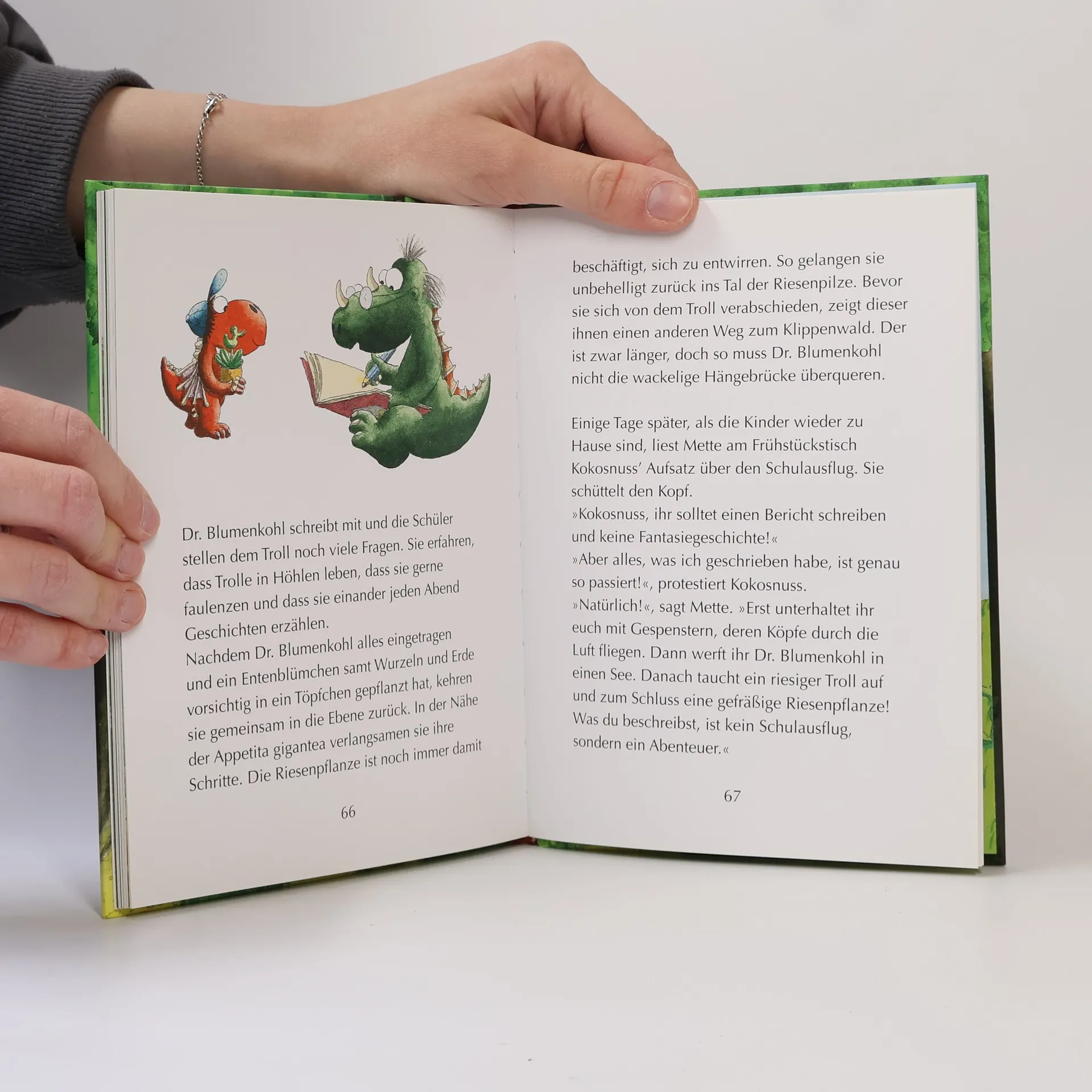 Die lang ersehnte zweite Kokosnuss-Schulgeschichte! Auf den Schulausflug ins Pilz-Tal hat der kleine Drache Kokosnuss gar keine Lust: Sicherlich redet Lehrer Bronco Blumenkohl wieder stundenlang nur über ausgestorbene Pflanzen. Doch dann erwähnt Papa Magnus unheimliche Wesen, die im Pilz-Tal leben sollen. Vielleicht wird der Ausflug doch ganz spannend?!, denkt Kokosnuss. Tatsächlich können Kokosnuss und die anderen Drachenkinder keine Sekunde durchatmen: Ihr Lehrer ist zwar ein kluger Biologe, aber von Gefahren wie Treibsand, tiefen Schluchten, Würgeschlangen und unheimlichen Wesen hat er gar keine Ahnung! Ein Glück für Herrn Blumenkohl, dass er so abenteuer-erprobte Schüler hat! Die Geschichten über die aufregenden Abenteuer, die der kleine Drache Kokosnuss mit seinen Freunden erlebt, sind inzwischen wahre Kinderbuchklassiker. Ingo Siegner schreibt über Freundschaft und Mut und fügt liebenswert-originelle Illustrationen hinzu. Die »Dein-Spiegel-Bestseller«-Reihe eignet sich perfekt zum Vor- und Selberlesen. Ausstattung: Mit fbg. Illustrationen