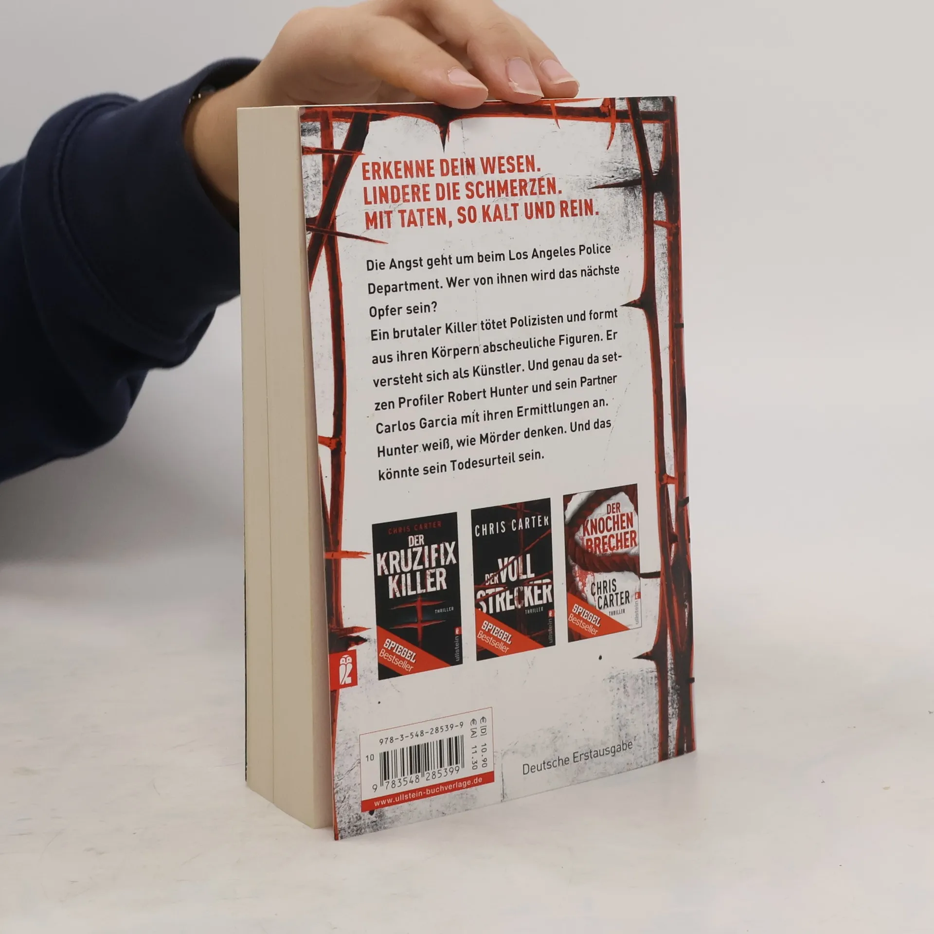 Die Angst geht um beim Los Angeles Police Department. Wer von ihnen wird das nächste Opfer? Ein brutaler Mörder tötet Polizisten und formt aus ihren Körpern abscheuliche Figuren. Er versteht sich als Künstler. Und genau da setzen Profiler Robert Hunter und sein Partner Carlos Garcia mit ihren Ermittlungen an. Hunter weiß, wie Mörder denken. Und das könnte sein Todesurteil sein.