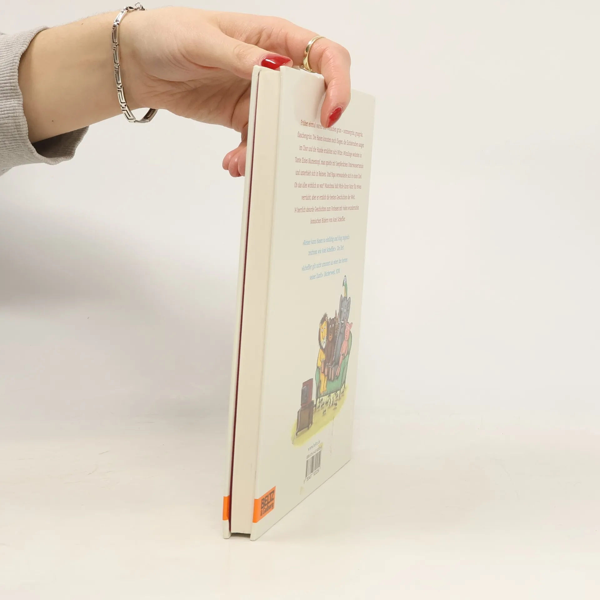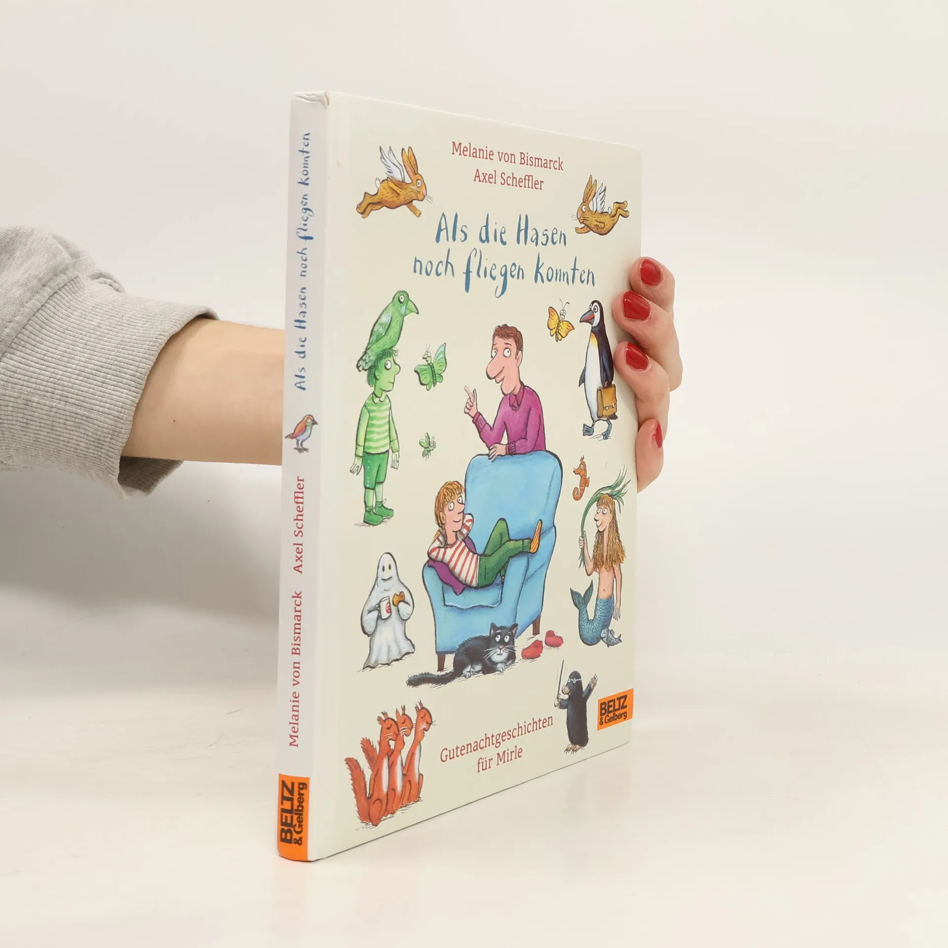 Mirles Vater erzählt die besten Gutenachtgeschichten der Welt! Witzige und absurde Geschichten, über die sich Kinder wunderbar amüsieren, liebevoll erzählt von einer neuen Autorin. Und wohl schon deshalb etwas Besonderes, weil Axel Scheffler sie mit vielen bezaubernden Bildern illustriert hat. Schöner kann man nicht zu Bett gehen! Früher einmal waren alle Menschen grün - sommergrün, grasgrün, flaschengrün. Die Hasen konnten noch fliegen, die Eichhörnchen sangen im Chor und die Hunde erzählten sich Witze. Winzlinge wohnten in Tante Elsies Blumentopf, man spielte mit Seepferdchen Unterwassertennis und unterhielt sich in Reimen. Und Papa verwandelte sich in einen Esel. Ob das alles wirklich so war? Manchmal hält Mirle ihren Vater wirklich für etwas verrückt, aber er erzählt die besten Geschichten der Welt. 14 herrlich absurde Geschichten zum Vorlesen mit vielen wunderschön komischen Bildern von Axel Scheffler.