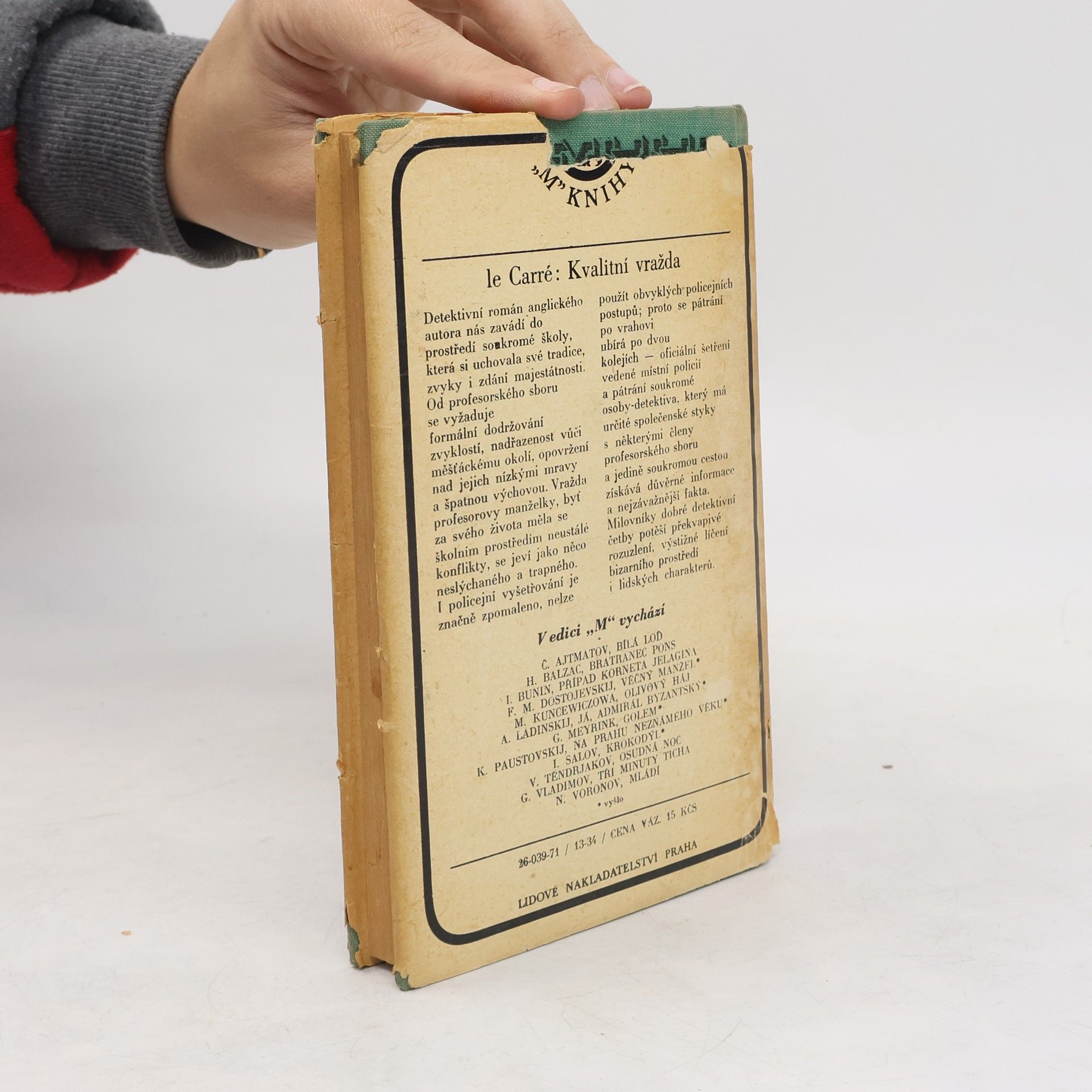 V detektivním románě z prostředí anglické soukromé školy, v příběhu zrcadlícím společenské přehrady mezi profesorským sborem a měšťanským prostředím, dojde k vraždě profesorovy manželky. Během pátrání po pachateli, v němž se vedle policie účastní i soukromý detektiv, dojde ještě k vraždě nepohodlného svědka. Příběh anglického autora, budovaný na spletitosti lidských charakterů, je završen překvapivým rozuzlením. Z anglického originálu A murder of quality, vydaného nakladatelstvím Penguin Books, London 1965, přeložila Anna van Dijková.
