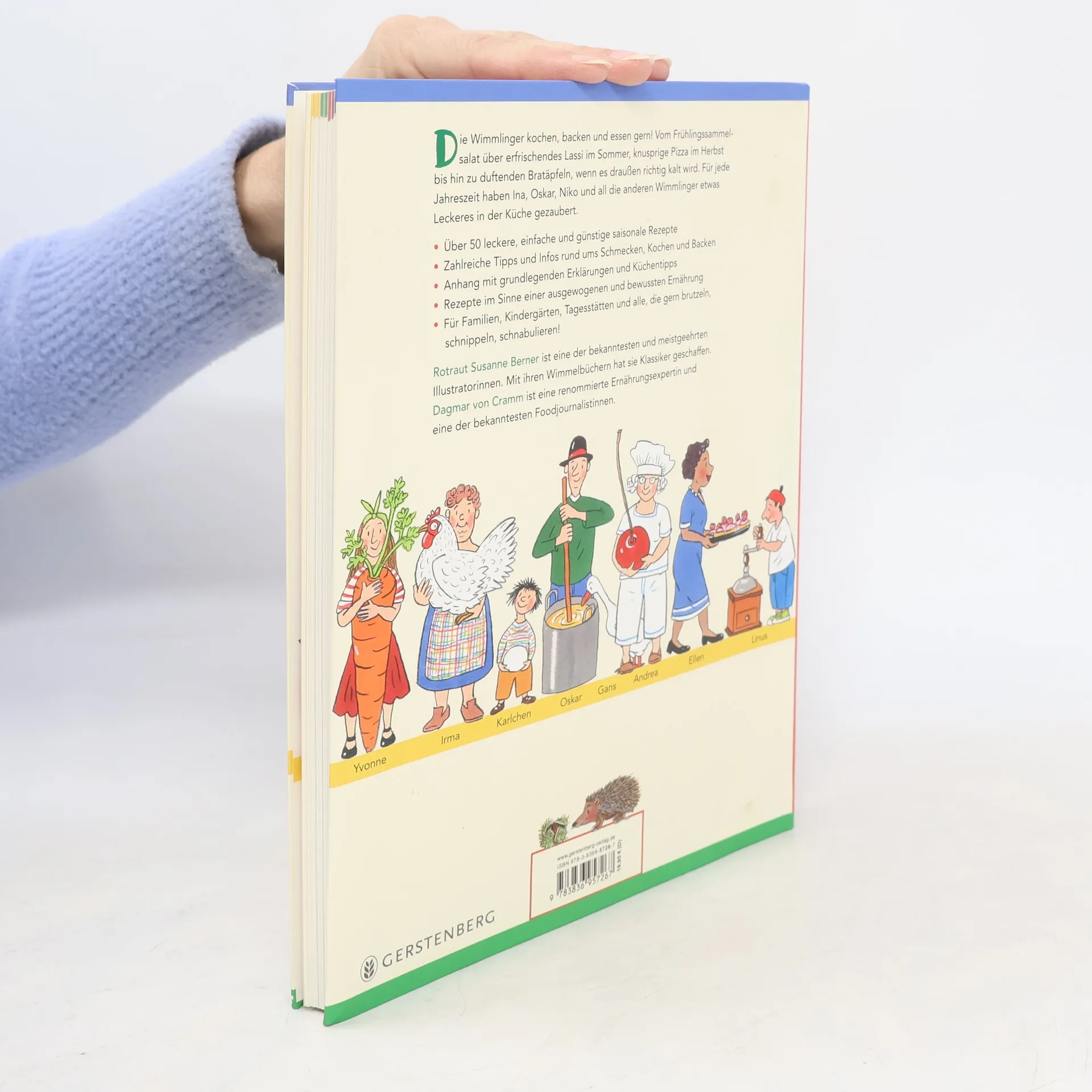 Gemeinsam mit der renommierten Ernährungsspezialistin Dagmar von Cramm hat sich Rotraut Susanne Berner überlegt, wer was in Wimmlingen gern kocht oder backt, isst oder trinkt. Entstanden ist eine tolle Kinderkochschule mit grundlegenden Erklärungen und Küchentipps sowie Schritt-für-Schritt-Anleitungen. 70 leckere, einfache und günstige Rezepte im Ablauf der Jahreszeiten tragen zu einer ausgewogenen und bewussten Ernährung bei, erstaunliche Experimente und Infos rund ums Schmecken, Kochen und Backen ergänzenden Inhalt. Ein Kochbuch für Familien, Kindergärten, Tagesstätten und alle, die gern brutzeln, schnippeln, schnabulieren!