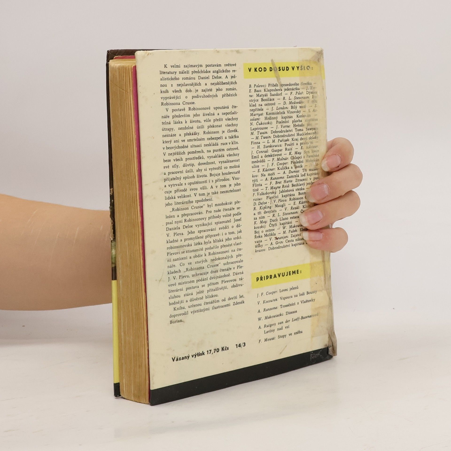 Proslavený román anglického autora Daniela Defoea vyšel od roku 1719 ve stovkách vydání a milionech výtisků. Kniha byla přeložena do desítek jazyků a dočkala se mnoha literárních adaptací i několika filmových zpracování. Mladí čtenáři tentokrát dostávají do rukou moderní verzi původní dvoudílné předlohy. Prožijí se svým hrdinou nejen osudné ztroskotání a všechna dobrodružství, která zažil během dvaceti osmi let na pustém ostrově, ale po jeho šťastném návratu do civilizace se s ním vydají na další, několik let trvající cestu. Putování povede opět přes Robinsonův ostrov v Atlantiku dále na Dálný východ, přes Čínu a Mongolsko do Ruska a od pobřeží Severního ledového oceánu konečně zpět k jeho blízkým do rodné Anglie. Oba díly nového vydání převyprávěla svěžím stylem do současné češtiny Marie Formáčková. Doprovází je velký počet poutavých ilustrací Jiřího Petráčka.