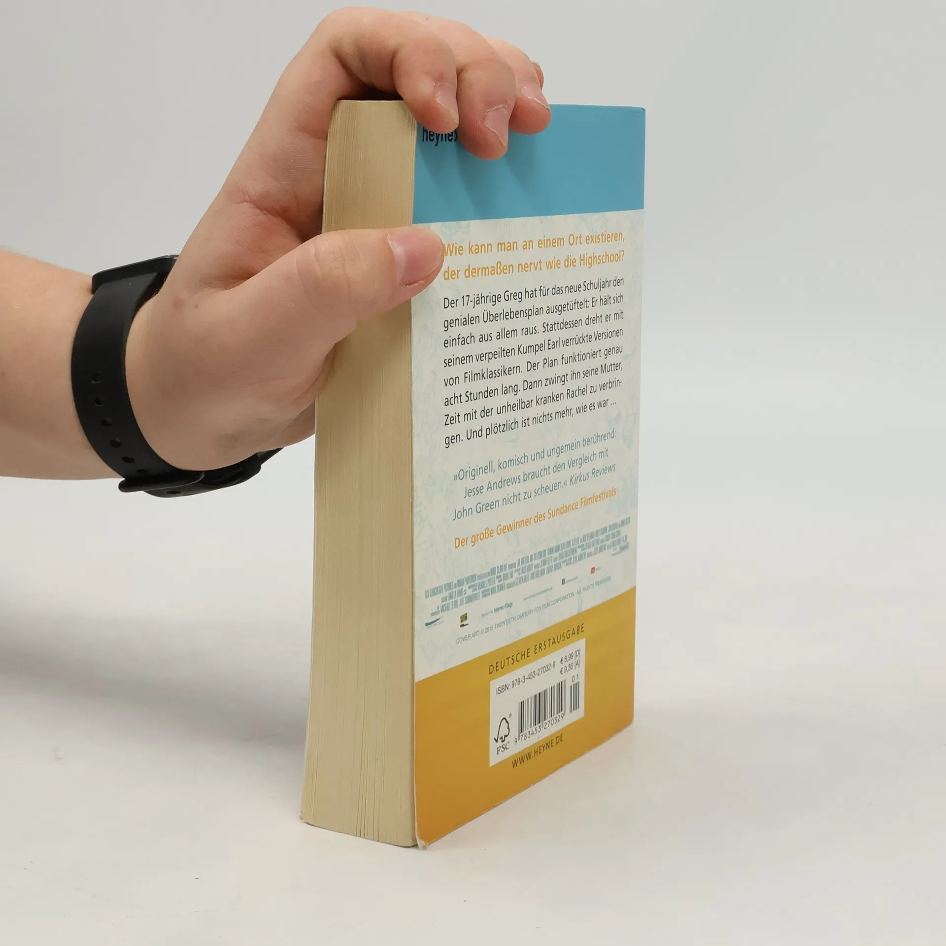 Ein etwas nerdiger Junge. Ein Mädchen, das stirbt. Ein Buch, das einen nicht mehr loslässt Greg ist siebzehn und hält sich am liebsten aus allem raus. Soziale Kontakte vermeidet er, wo immer es geht. Stattdessen dreht er mit seinem einzigen und ziemlich verpeilten Kumpel Earl verrückte Versionen von Filmklassikern. Bis seine Mutter ihn mehr oder weniger dazu zwingt, Zeit mit der unheilbar kranken Rachel zu verbringen. Greg ist alles andere als begeistert. Doch dann stellen er und Rachel überrascht – nahezu geschockt! – fest, dass sie einander wirklich mögen. Gregs ganzes Weltbild ändert sich. Doch den beiden läuft die Zeit davon …