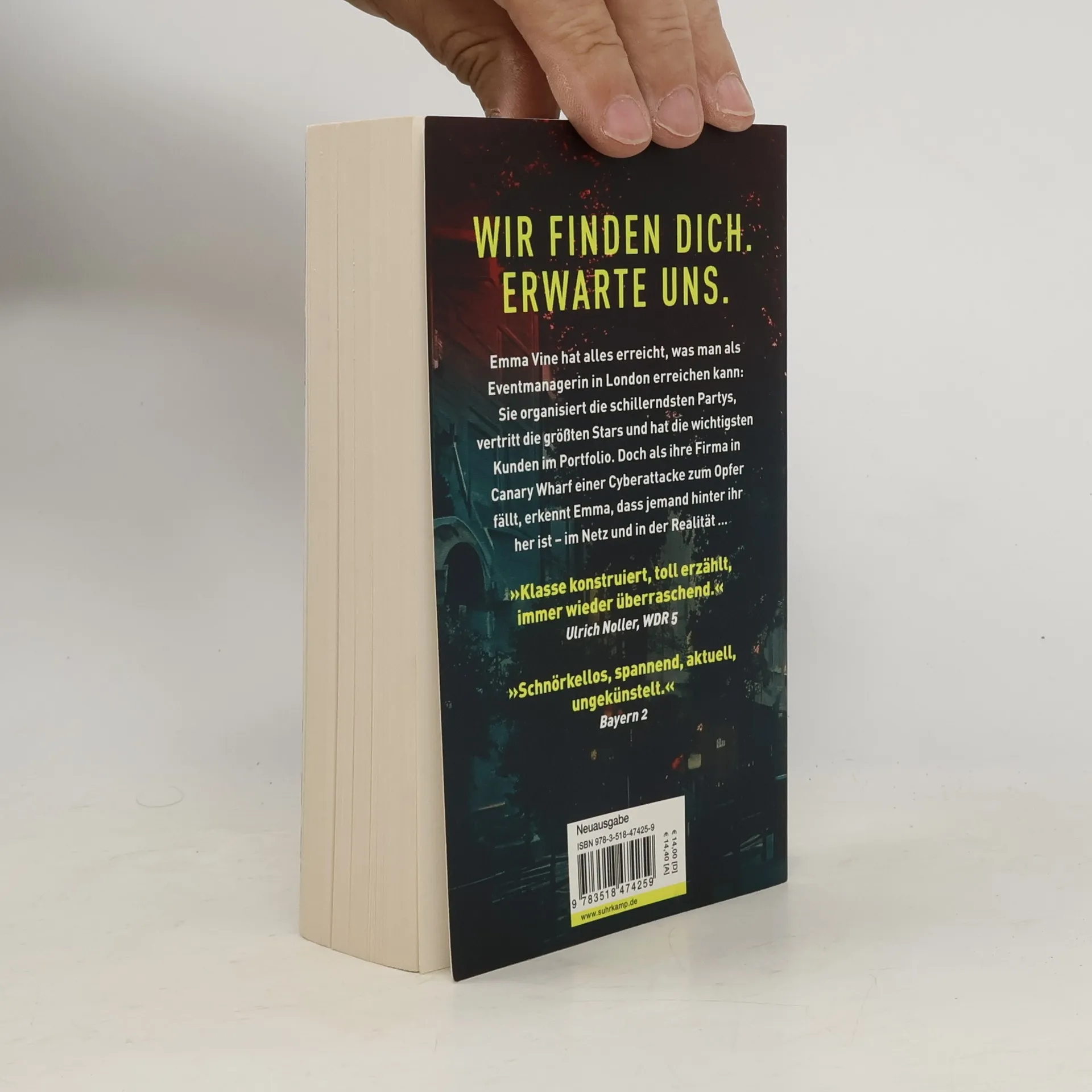 Der Tod von Margaret Thatcher, die Occupy-Bewegung und Anonymous halten London in Atem Emma Vine hat alles erreicht, was man als Eventmanagerin in London erreichen kann: Sie organisiert die schillerndsten Partys, vertritt die größten Stars und hat die wichtigsten Kunden im Portfolio. Doch als ihre Firma in Canary Wharf einer Cyberattacke zum Opfer fällt, erkennt Emma, dass jemand hinter ihr her ist – im Netz und in der Realität … Als in ihrer Firma plötzlich die Klimaanlage und der Strom ausfallen und dann sämtliche Ausgänge verriegelt werden und Rauch aus den Belüftungsschächten strömt, muss Emma hilflos zusehen, wie ihre Freundin panisch aus dem 15. Stock des Luxushochhauses springt. Kurz darauf wird Emma verhaftet. Sie soll sich in die Gebäudetechnik gehackt und die Katastrophe ausgelöst haben. Emma sieht sich einer Intrige ausgesetzt. Als dann ein weiteres Attentat verübt wird, bei dem sie selbst das Ziel war, beschließt Emma zurückzuschlagen. Eine erste Spur führt nach Brixton Hill, zu Allen, der sie schon seit Wochen stalkt. Doch sehr schnell kommt Emma einem Verbrechen auf die Spur, bei dem es um sehr viel Geld geht und bei dem ihre eigene Familie eine ganz eigene Rolle spielen könnte.