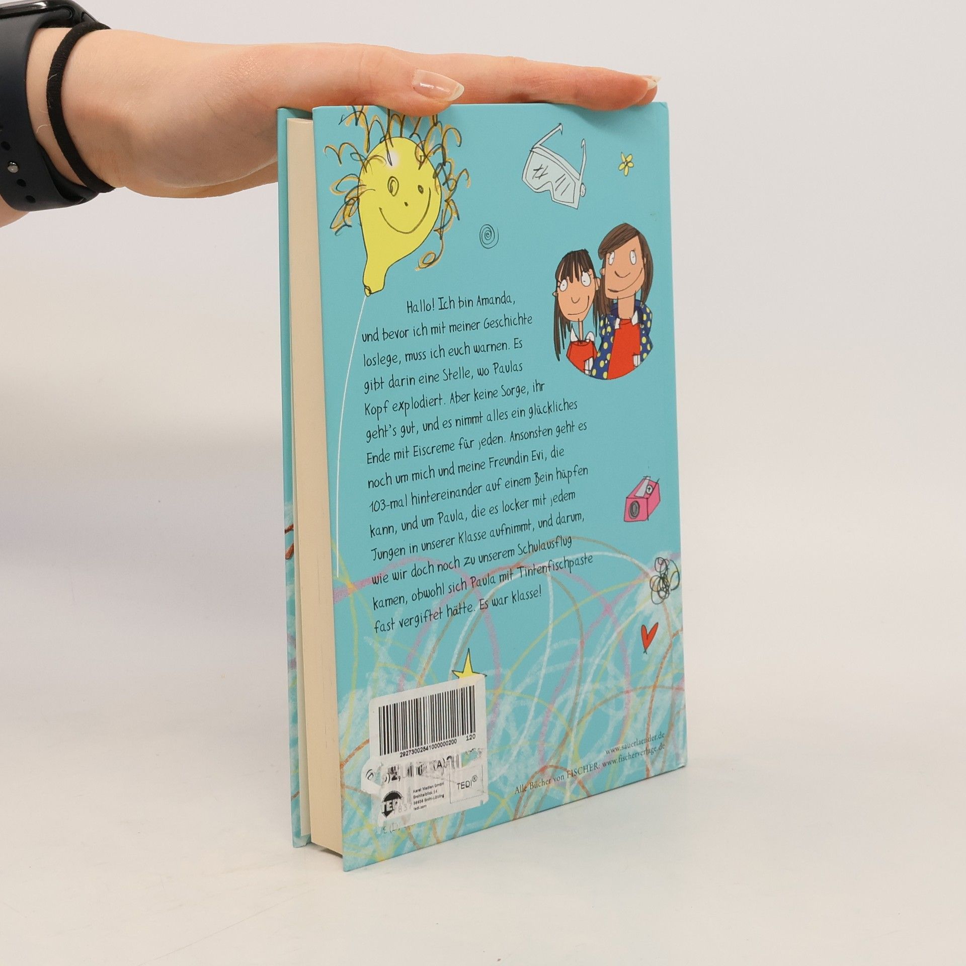 Hallo, ich bin Amanda! Bevor ich mit meiner Geschichte loslege, muss ich euch warnen. Es gibt darin eine Stelle, wo Paulas Kopf explodiert. Aber keine Sorge, ihr geht’s gut. Es nimmt alles ein gutes und glückliches Ende mit Eiscreme für alle. Ansonsten ist die Geschichte über mich und über Evi, die 103 mal auf einem Bein hüpfen kann, und Paula, die es locker mit jedem Jungen aufnimmt, und über die Grundschule in der Ungeradenstraße und darüber, wie wir doch noch zu unserem Schulausflug kamen, obwohl Paulas Kopf geplatzt ist. Es war klasse!