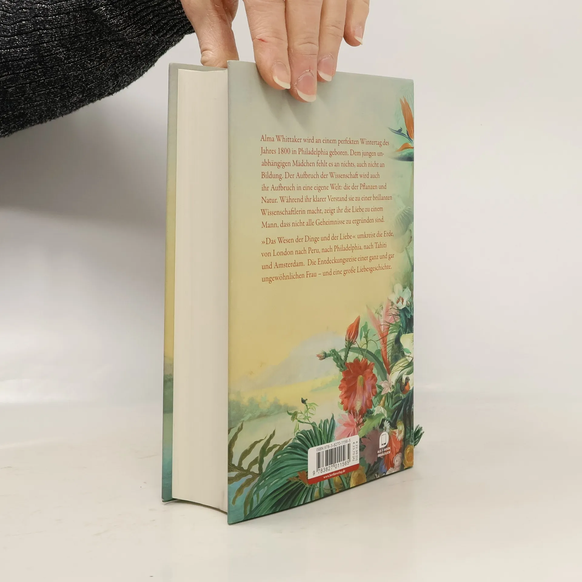 Am Ende ihres Lebens wird Alma auf ein großes Jahrhundert zurückblicken. Sie wird in die Aufbruchsphase Amerikas geboren, die Welt wird erforscht und erobert, Altes durch Neues abgelöst. Ihr umtriebiger Vater ist mit Pflanzenhandel reich geworden und der jungen Alma wird es an nichts fehlen, auch nicht an Bildung. Und so wächst sie zwischen den Pflanzen der prächtigen Gewächshäuser heran. Ihre ganze Leidenschaft gilt der Natur, und während ihrer Studien, die sie ihr ganzes Leben begleiten, gelingen ihr ähnlich revolutionäre Einsichten, wie sie dann Charles Darwin der Welt vorführen wird. Doch Alma selbst zweifelt an ihren Erkenntnissen. Gibt es eine wissenschaftliche Erklärung, warum sich der Mensch nach Liebe sehnt? Was ist Liebe überhaupt? Warum sind wir selbstlos und uneigennützig, wie ihre Adoptivschwes - ter Prudence, die schon früh sich für die Befreiung der Sklaven einsetzt? Alma wird Antworten finden, ebenso wie die Liebe.