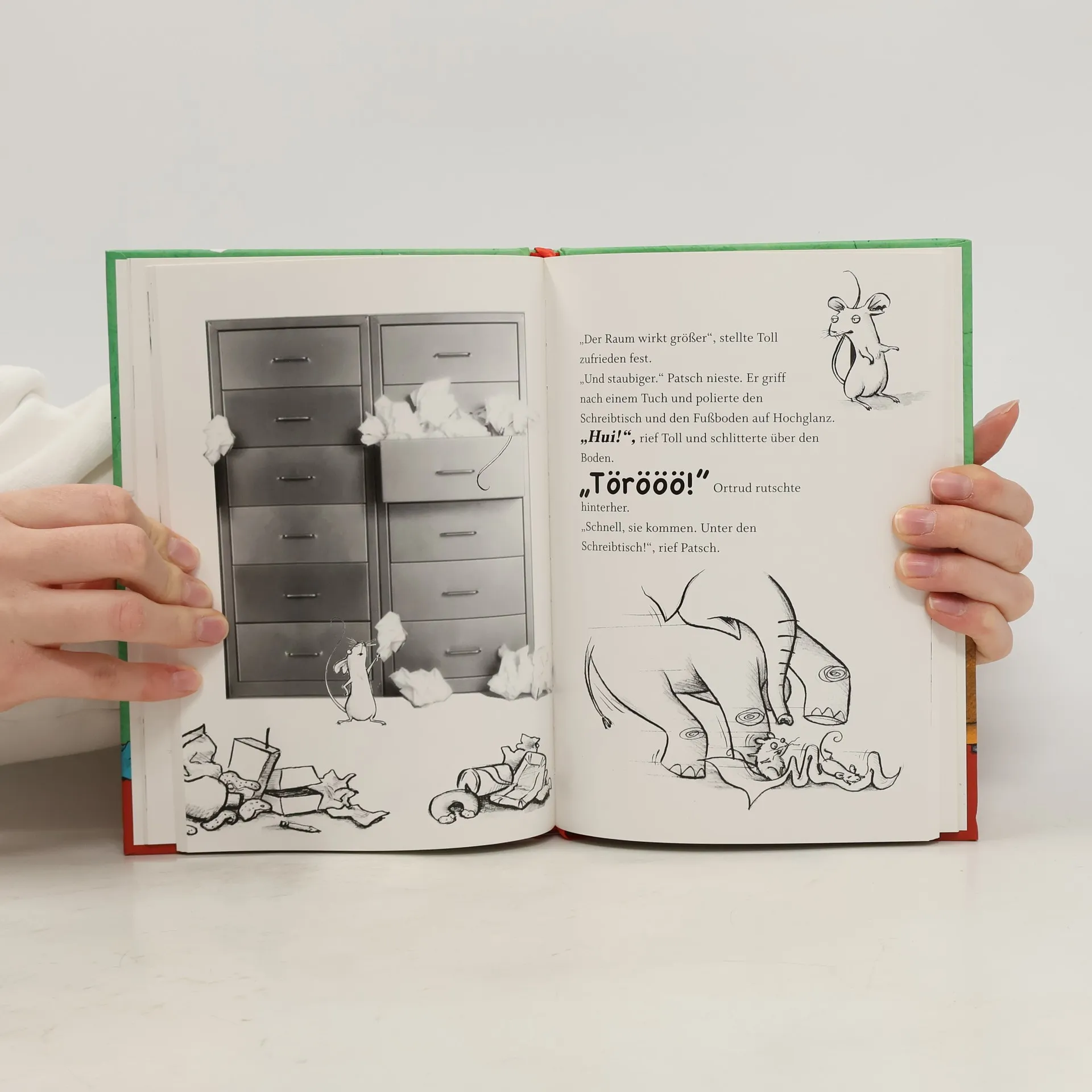Frech, verfressen und voller verrückter Ideen. Die Mäuse Toll & Patch stellen alles auf den Kopf. Toll und Patsch denken vor allem an: Wurstbrötchen, Streuselkuchen und … Eugen Brötler. Für ihren (unfreiwilligen) Gastgeber würden die beiden alles tun. Großes Mäuse-Ehrenwort! Doch warum zum Kuckuck sprudelt auf einmal zitroniger Schokoladenschaum aus der Heizung, nachdem Toll und Patsch sie repariert haben? Und wo kommt plötzlich dieser gefräßige Babyelefant her?