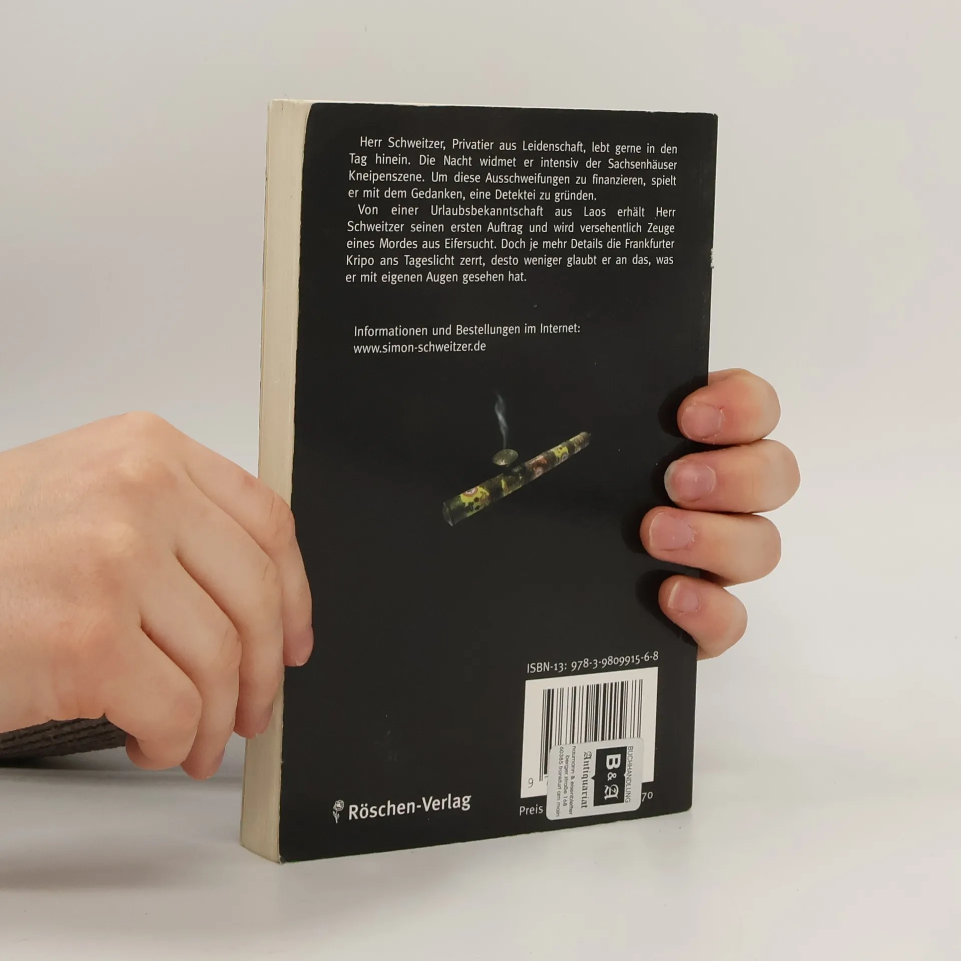 Von einer Urlaubsbekanntschaft aus Laos erhält Herr Schweitzer seinen ersten Auftrag und wird versehentlich Zeuge eines Mordes aus Eifersucht. Doch je mehr Details die Frankfurter Kripo ans Tageslicht zerrt, desto weniger glaubt er an das, was er mit eigenen Augen gesehen hat. Frank Demant, geboren 1959 in Frankfurt/Main, aufgewachsen im Stadtteil Fechenheim. Besuchte das Helmholtz-Gymnasium in Bornheim. Von 1984 bis 2005 Taxifahrer in Frankfurt. Seit Mai 2005 ist Demant freier Schriftsteller. Lebt abwechselnd in Frankfurt und Costa Rica.