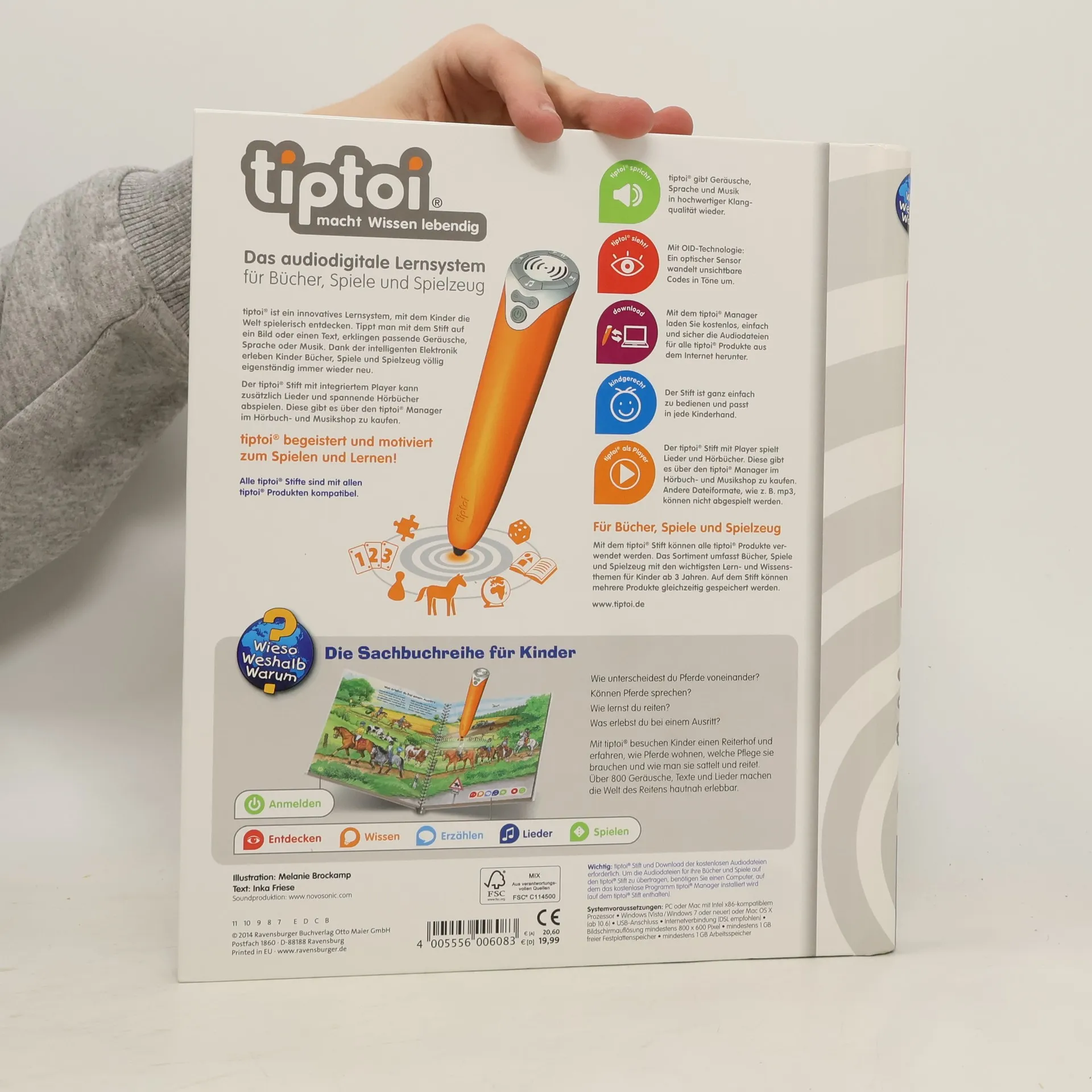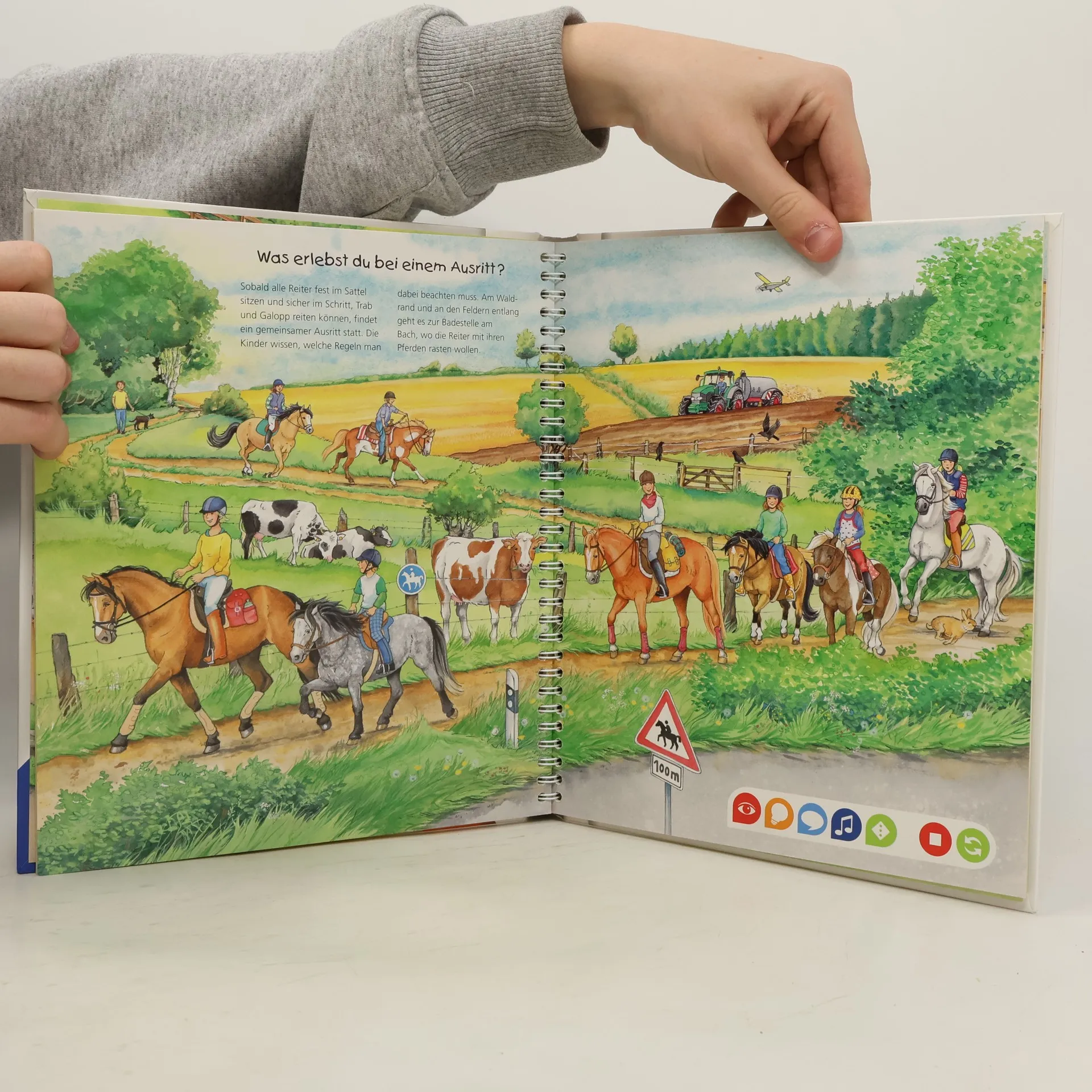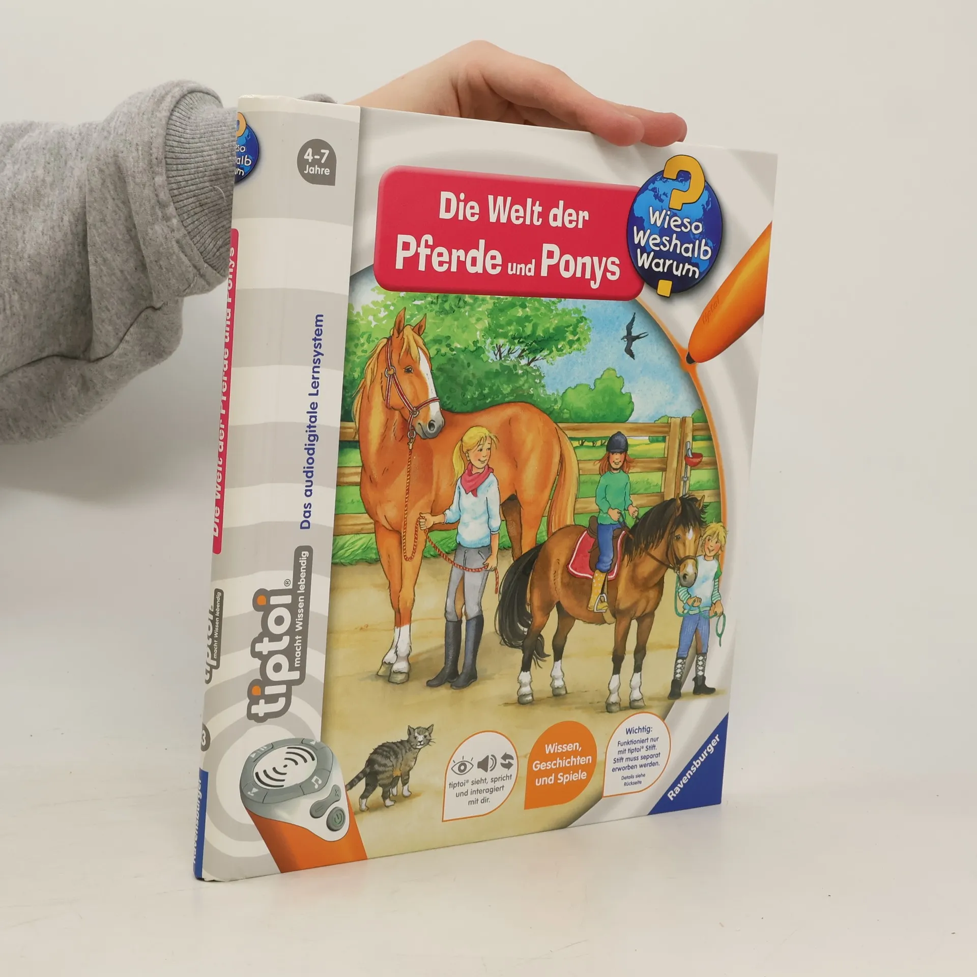 Das Glück der Erde liegt auf dem Rücken der Pferde! Auf dem Hof von Familie Lüttges entdecken Kinder spielerisch die Welt der Pferde und Ponys. Was gibt es bei der Stallarbeit und Fellpflege zu beachten? Wie wird ein Pferd gesattelt und aufgezäumt? Was nimmt man bei einem Ausritt mit? Mit tiptoi erleben Kinder Ferien auf dem Reiterhof. Egal ob sie zum ersten Mal Stallluft schnuppern oder selbst schon reiten können, in diesem Buch gibt es viel über ihre liebsten Vierbeiner zu lernen. Was macht der Traktor auf dem Feld? Wann kommt die Feuerwehr? Wie groß wird ein Pony? Die interaktive Sachbuchreihe tiptoi Wieso? Weshalb? Warum? beantwortet wichtige Kinderfragen auf Augenhöhe. Auf den liebevoll illustrierten Seiten tauchen die Kinder in eine Welt ein, die durch zahlreiche authentische Geräusche lebendig wird. Das Sachwissen wird altersgerecht erklärt und ist fachlich geprüft. Die Kinder können sich dank der einfachen und intuitiven Nutzung mit dem tiptoi-Stift das Wissen selbst erschließen. Sie lernen, Zusammenhänge zu begreifen und erfahren spannende Informationen über ihren Alltag und ihre Umwelt. Tolle Geschichten, Lieder und unterhaltsame Spiele laden dabei immer wieder zum selbstständigen Entdecken und Erforschen ein. tiptoi-Stift nicht enthalten. Muss separat erworben werden. Dieses Produkt hat keine tiptoi-CREATE-Aufnahmefunktion.