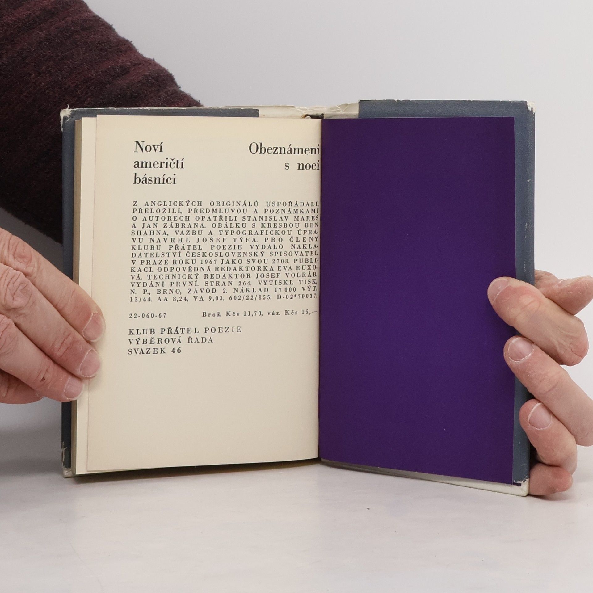 S podtitulem Noví američtí básníci vydal ČS ve výběrové řadě KPP. Z anglických originálů uspořádali, přeložili, předmluvou a poznámkami o autorech opatřili Stanislav Mareš a Jan Zábrana.Sbírka zahrnuje v abecedním pořádku tato jména: John Ashbery, Gregory Corso, Robert Creeley, Alan Dugan, Robert Duncan, Irving Feldman, Lawrence Ferlinghetti, Allen Ginsberg, Donald Hall, LeRoi Jones, X.J. Kennedy, Galway Kinnel, Denise Levertovová, John Logan, Robert Lowell, Michael McClure, James Merrill, William S. Merwin, Howard Nemerov, Louis Simpson, William D.Snodgrass, Gary Snyder, Philip Whalen, Richard Wilbur.
