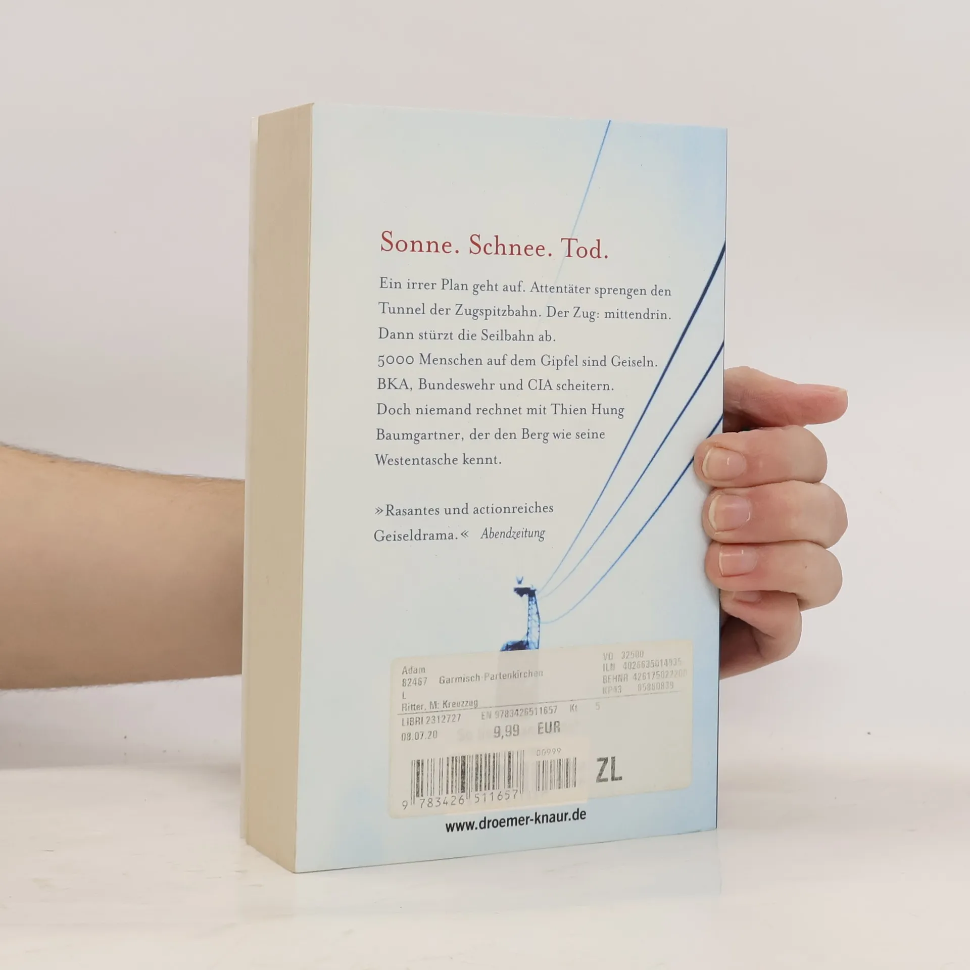 Ein irrer Plan geht auf. Attentäter sprengen auf der Zugspitze den Tunnel der Zahnradbahn. Die Seilbahn stürzt ab. 5000 Menschen auf dem Gipfel sind Geiseln. BKA, Bundeswehr und CIA scheitern. Doch niemand hat mit Thien Baumgartner gerechnet, der die Zugspitze wie seine Westentasche kennt ...