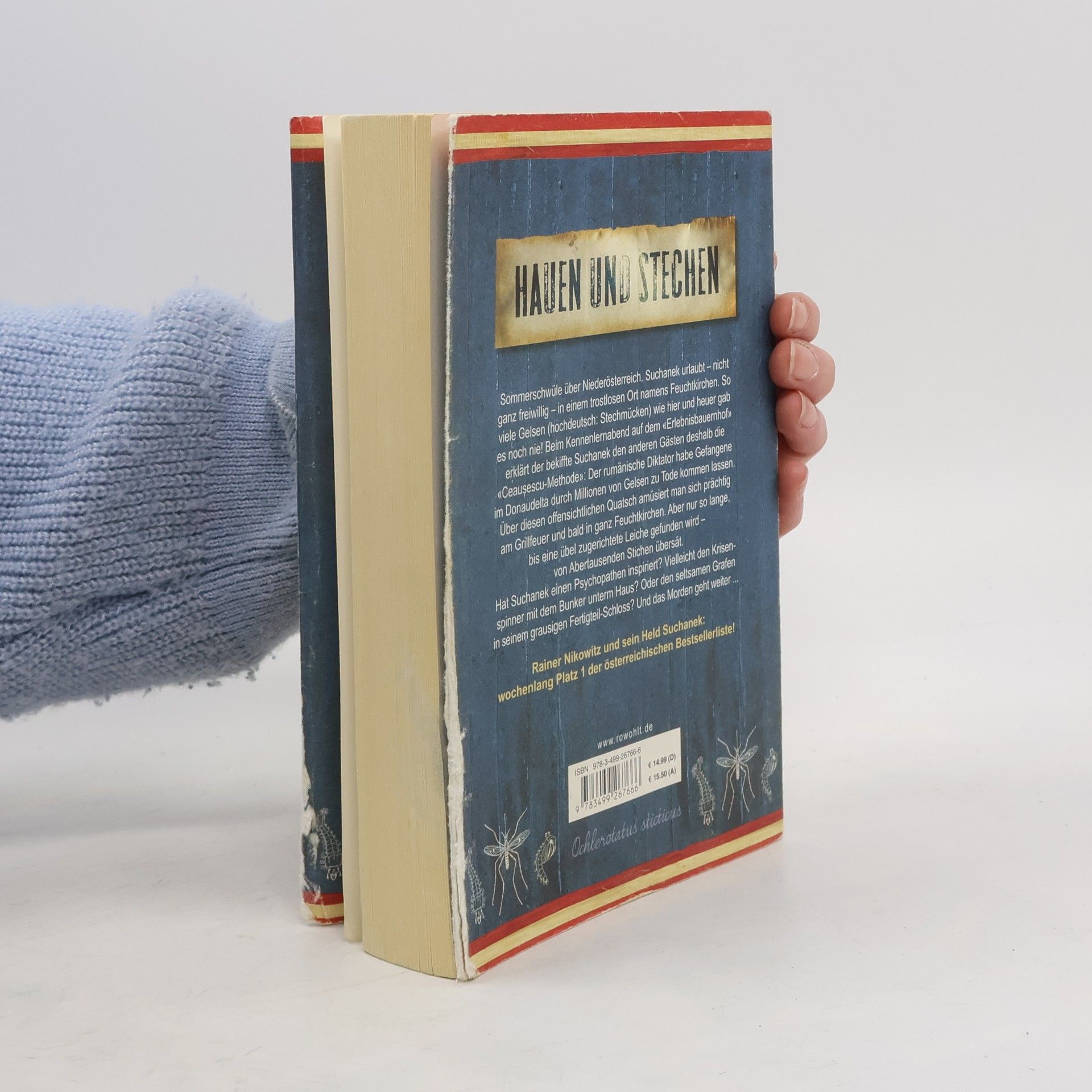 Die Nr. 1 aus Österreich: Rainer Nikowitz und sein reichlich unfreiwilliger Held Suchanek begeistern die Leser Sommerschwüle über Niederösterreich. Suchanek urlaubt - nicht ganz freiwillig - in einem traurigen Ort namens Feuchtkirchen. So viele Gelsen (hochdeutsch: Stechmücken) wie hier und heuer gab es noch nie! Beim Kennenlernabend auf dem «Erlebnisbauernhof» erklärt Suchanek den anderen Gästen deshalb die «Ceausescu-Methode»: Der Diktator habe Gefangene im Donaudelta durch Millionen von Gelsen zu Tode kommen lassen. Darüber amüsiert man sich prächtig am Grillfeuer. Aber nur bis zum nächsten Morgen, als eine gefesselte Leiche gefunden wird. Sie ist von Stichen übersät. Aber auch nicht unerheblich von Wildsauen angefressen. Hat Suchanek einen Psychopathen inspiriert? Vielleicht den Krisenspinner mit dem Bunker unterm Haus? Oder den seltsamen Grafen in seinem erzhässlichen Herrenhaus? Und das Morden geht weiter...