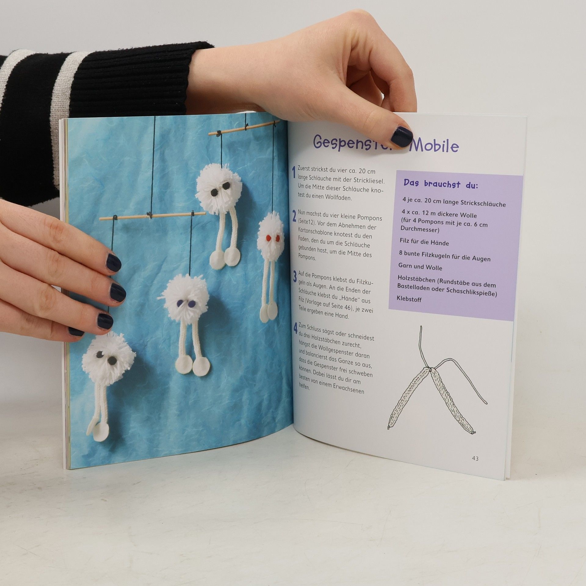 Neue Ideen für die Strickliesel Eine Strickliesel, ein Wollknäuel oder viele bunte Wollreste: Mehr braucht es nicht, um wunderschöne Dinge für sich selbst oder als Geschenk für andere zu basteln. Aus dicken und dünnen Strickschläuchen entstehen niedliche Mäuschen, Marionetten und andere Kuscheltiere zum Spielen, modische Zopfbänder und Handytaschen für die kleine Dame von Welt und praktische Utensilien, die auch den Eltern und Freunden gefallen. Wie die dünnen und dicken Strickschläuche gemacht werden, wird im Buch genau erklärt, und mit den verständlichen Anleitungen lassen sich die kinderleichten Projekte schnell verwirklichen. Damit die kleinen Bastelkünstler gleich loslegen können, ist dem Set eine Strickliesel mit vier und sechs Ösen sowie ein Holzstäbchen beigelegt. Damit lassen sich sowohl dicke als auch dünne Wollschläuche stricken.