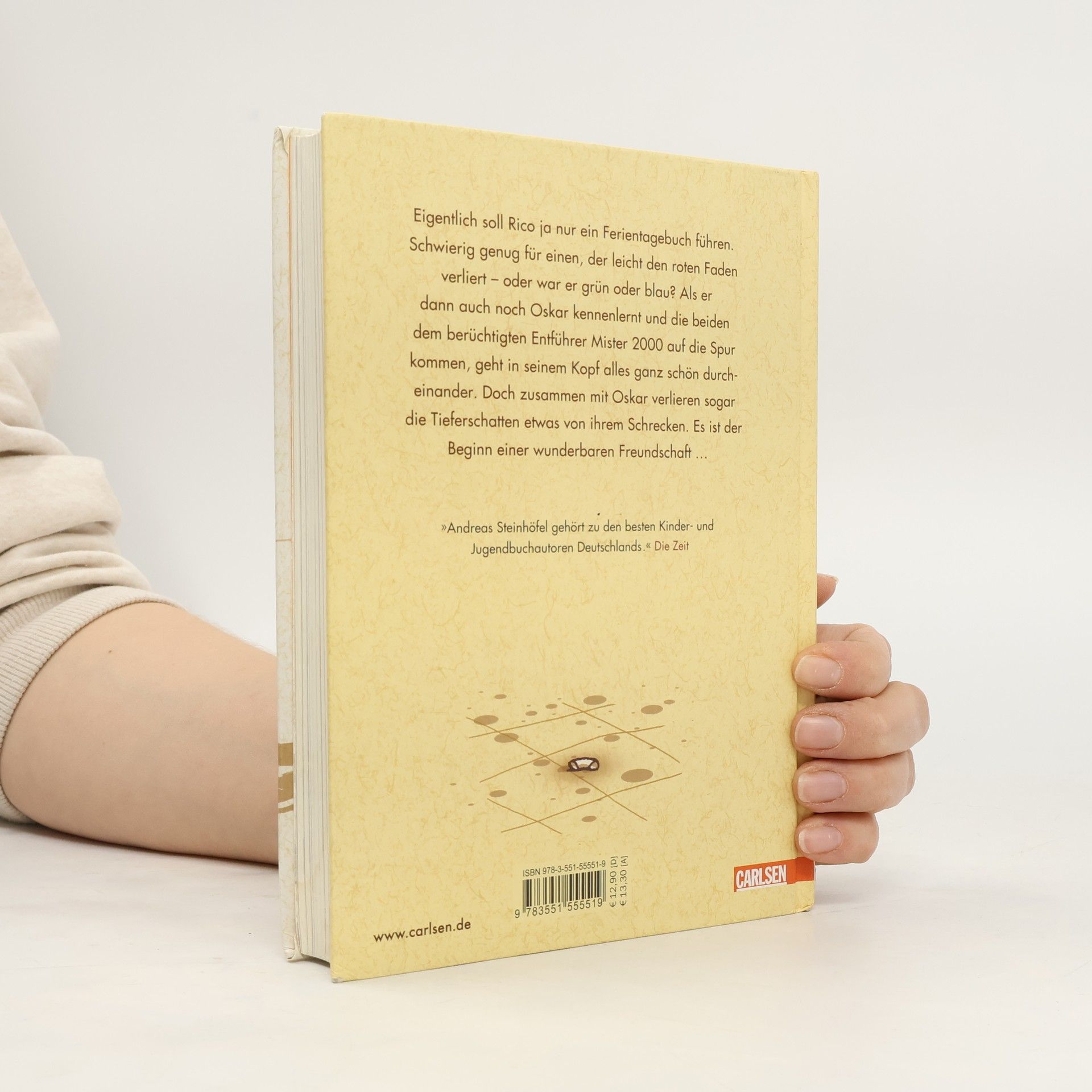 Eigentlich soll Rico ja nur ein Ferientagebuch führen. Schwierig genug für einen, der leicht den roten oder den grünen oder auch den blauen Faden verliert. Aber als er dann auch noch Oskar mit dem blauen Helm kennen lernt und die beiden dem berüchtigten ALDI-Kidnapper auf die Spur kommen, geht es in seinem Kopf ganz schön durcheinander. Doch zusammen mit Oskar verlieren sogar die Tieferschatten etwas von ihrem Schrecken. Es ist der Beginn einer wunderbaren Freundschaft ... Alle Bücher über Rico und Oskar:Rico, Oskar und der Diebstahlstein Rico, Oskar und das Herzgebreche Rico, Oskar und die TieferschattenRico, Oskar und das Vomhimmelhoch Kindercomics:Rico & Oskar – Fische aus Silber Rico & Oskar – Die Regenhütte