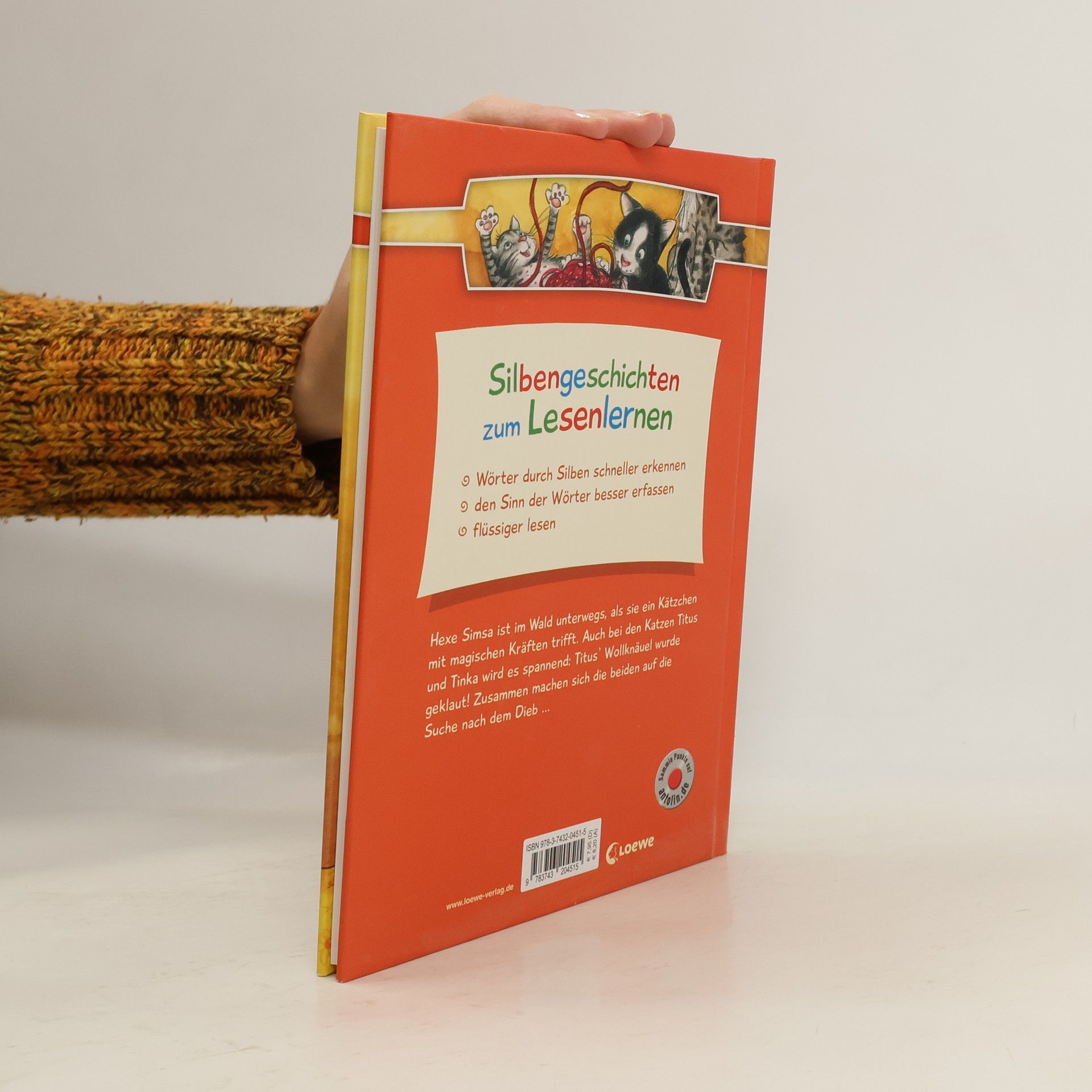 Das Buch ist bei deiner Buchhandlung vor Ort und bei vielen Online-Buchshops erhältlich!+ Bücher, die Kinder gerne lesen wollen + Beliebtes Thema: Katzen + Ausgewogenes Text-Bild-Verhältnis + Große Schrift + Kurze Kapitel + Geeignet zum Vorlesen und ersten Selberlesen + Ideal zum Lesenlernen + Hochwertiges Hardcover + Mit vielen farbigen Illustrationen + Bewährte Qualität + Hexe Simsa ist im Wald unterwegs, als sie ein Kätzchen mit magischen Kräften trifft. Auch bei den Katzen Titus und Tinka wird es spannend: Titus‘ Wollknäuel wurde geklaut! Zusammen machen sich die beiden auf die Suche nach dem Dieb… Mit Silbengeschichten Lesen lernen: - Wörter durch Silben schneller erkennen- Verbessert nachweislich die Rechtschreibung- den Sinn der Wörter besser erfassen - flüssiger lesen - auch auf antolin. de gelistet Mit Silben flüssig lesen lernen! Durch kurze, einfache Sätze in großer Fibelschrift können Kinder ab 7 Jahren (2. Klasse) leicht lesen lernen. Die Silbenmethode unterstützt sie dabei: Die farbige Markierung der einzelnen Silben sorgt für bessere Erkennbarkeit und damit für einen schnelleren Leseerfolg. Die vielen bunten Bilder in diesem Kinderbuch tragen zusätzlich zum Textverständnis bei.