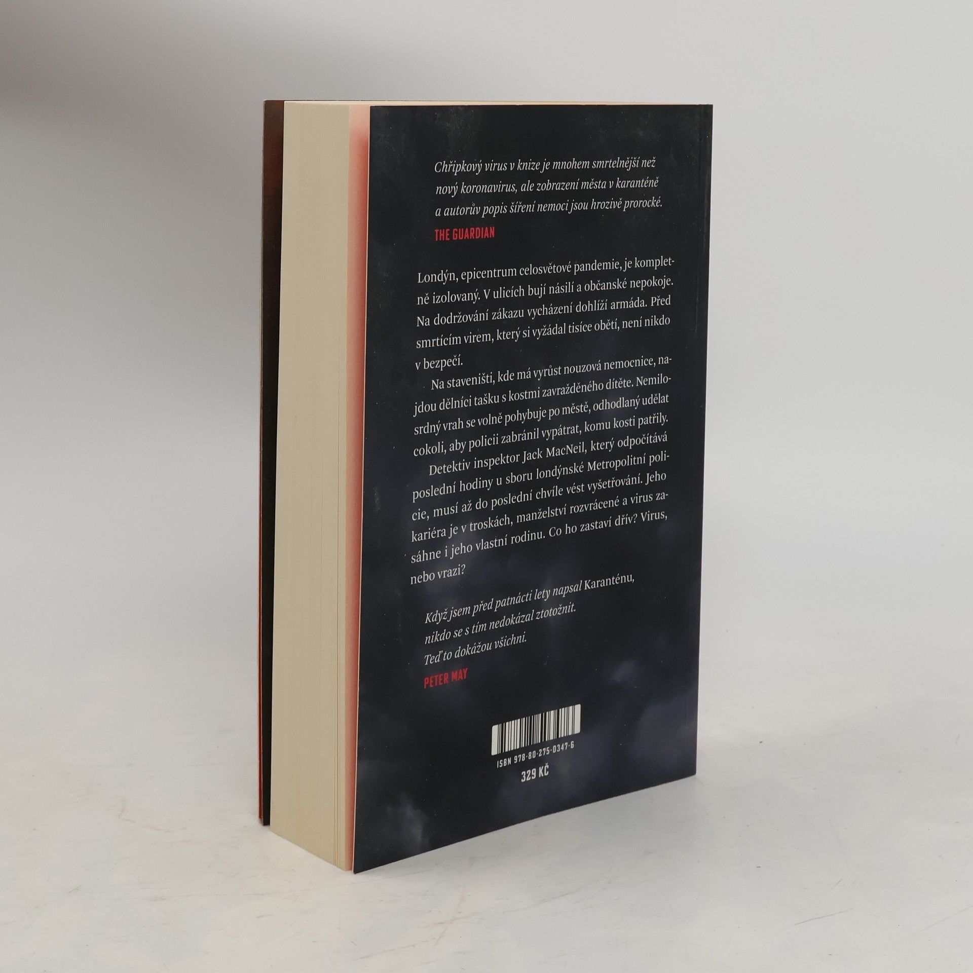 Thriller, který předpověděl celosvětovou pandemii. Londýn, epicentrum celosvětové pandemie, je kompletně izolovaný. V ulicích bují násilí a občanské nepokoje. Na dodržování zákazu vycházení dohlíží armáda. Před smrtícím virem, který si vyžádal tisíce obětí, není nikdo v bezpečí. Na staveništi, kde má vyrůst nouzová nemocnice, najdou dělníci tašku s kostmi zavražděného dítěte. Nemilosrdný vrah se volně pohybuje po městě, odhodlaný udělat cokoli, aby policii zabránil vypátrat, komu kosti patřily. Inspektor Jack MacNeil, který odpočítává poslední hodiny u sboru londýnské Metropolitní policie, musí až do poslední chvíle vést vyšetřování. Jeho kariéra je v troskách, manželství rozvrácené a virus zasáhne i jeho vlastní rodinu. Co ho zastaví dřív? Virus, nebo vrazi?