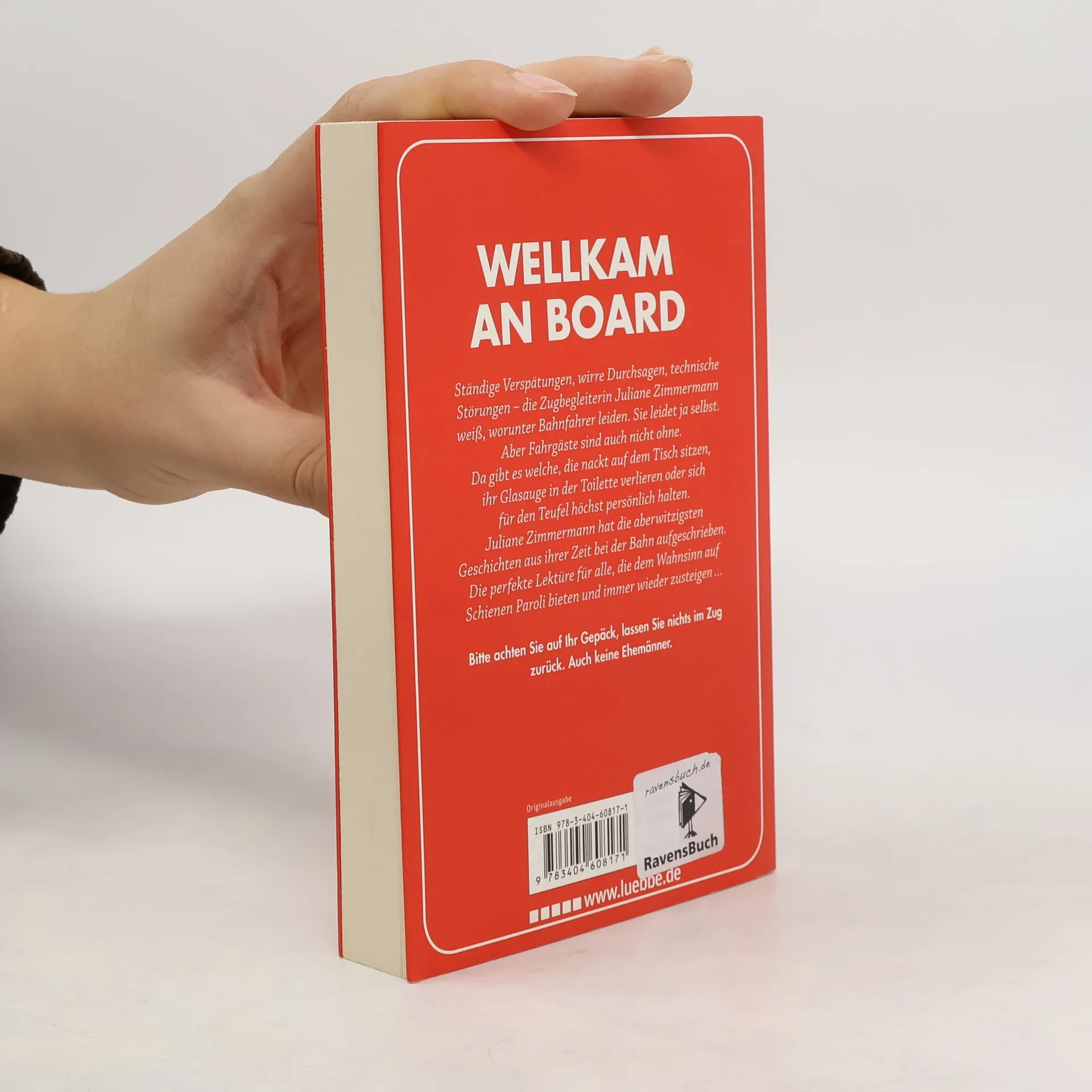 Juliane Zimmermann mag ihren Job als Zugbegleiterin. Gut, sie versteht, dass die meisten Reisenden Verspätungen, Zugausfälle oder falsche Reservierungen nicht lustig finden. Aber dass man sich immer gleich so aufregen muss ... Und überhaupt: Die Passagiere sind auch nicht ohne. Da gibt es welche, die nackt auf dem Tisch sitzen, ihr Glasauge in der Toilette verlieren oder sich für den Teufel höchst persönlich halten. Über die sollte man auch mal schreiben, findet Juliane Zimmermann, und legt nun ein höchst amüsantes Buch voller skurriler Bahngeschichten vor.
