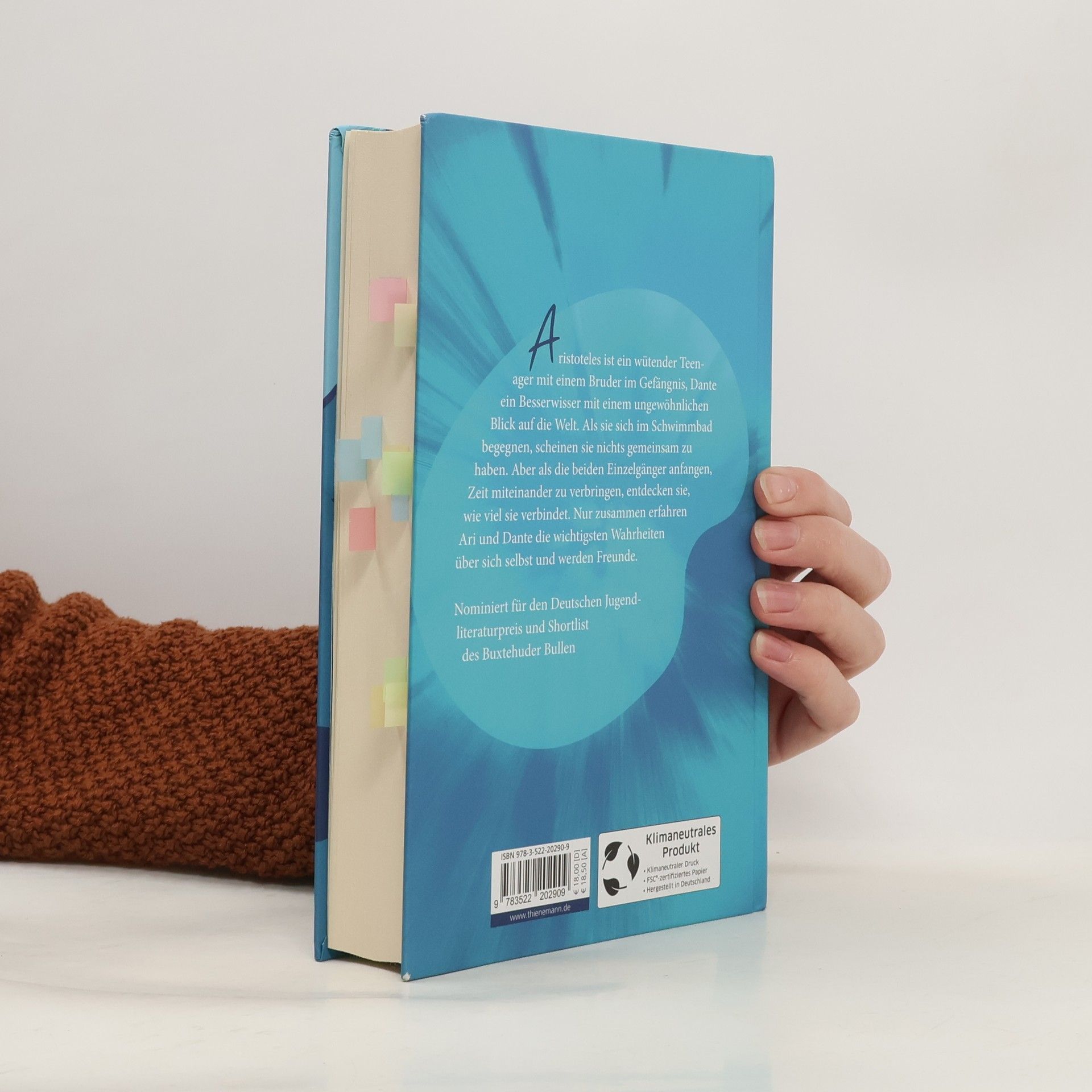 Vielfach ausgezeichneter Coming-of-Age-Roman über Freundschaft, Familie, Liebe und Coming-out, der in Hollywood verfilmt wurde. Ab 14 Jahren. Aristoteles ist ein wütender Teenager mit einem Bruder im Gefängnis, Dante ein Besserwisser mit einem ungewöhnlichen Blick auf die Welt. Als sie sich im Schwimmbad begegnen, scheinen sie nichts gemeinsam zu haben. Aber als die beiden Einzelgänger anfangen, Zeit miteinander zu verbringen, entdecken sie, wie viel sie verbindet. Nur zusammen erfahren Ari und Dante die wichtigsten Wahrheiten über sich selbst und werden Freunde. Nominiert für den Deutschen Jugendliteraturpreis und Shortlist des Buxtehuder Bullen Und die Geschichte geht weiter: Die lang ersehnte Fortsetzung ist endlich da: „Aristoteles und Dante springen in den Strudel des Lebens“.