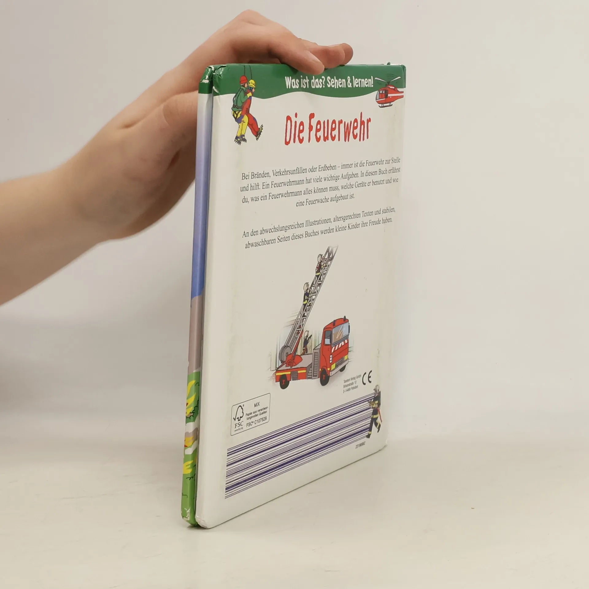 Bei Bränden, Verkehrsunfällen oder Erdbeben - immer ist die Feuerwehr zur Stelle und hilft. Ein Feuerwehrmann hat viele wichtige Aufgaben. In diesem Buch erfährst du, was ein Feuerwehrmann alles können muss, welche Geräte er benutzt und wie eine Feuerwache aufgebaut ist. An den abwechslungsreichen Illustrationen, altersgerechten Texten und stabilen, abwaschbaren Seiten dieses Buches werden kleine Kinder ihre Freude haben.