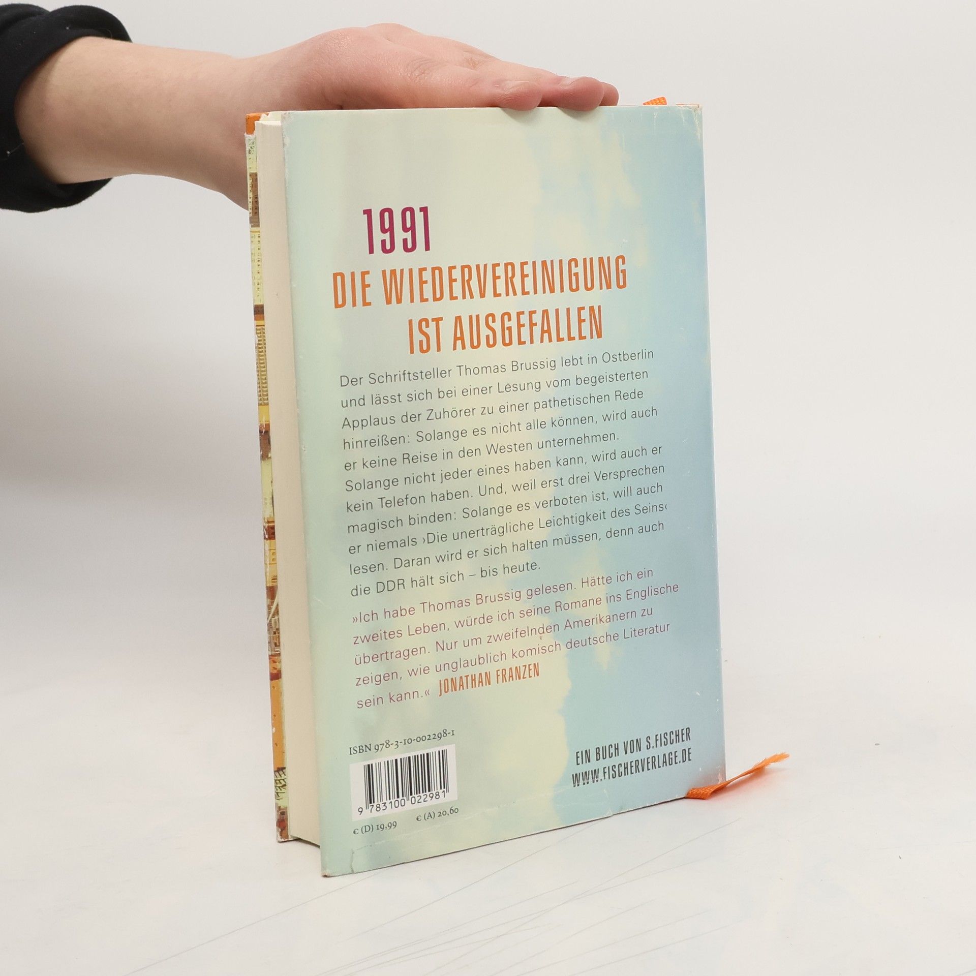 Thomas Brussig erzählt die schillernde Biographie des berühmten Schriftstellers Thomas Brussig und gestaltet unsere Gegenwart neu. 1991 erscheint in der DDR sein erster Roman. Bei einer Lesung hält er eine pathetische Rede: Solange es nicht allen möglich ist, wird er keine Reise in den Westen antreten! Solange nicht jeder ein Telefon haben kann, wird auch er keines besitzen! Und solange es verboten ist, will er niemals ›Die unerträgliche Leichtigkeit des Seins‹ lesen! Diese Worte machen ihn schlagartig berühmt. In den folgenden Jahren wird der eigentlich kleine Feigling fälschlicherweise als Dissident wahrgenommen. Er wird zum Olympiabotschafter für Berlin ernannt, knutscht im Harz unter Holz-Eiffeltürmen und gerät in eine Stasi-Affäre. Mit seinem Schreiben und seiner Guerilla-Statistik beeinflusst er die öffentliche Meinung im Osten und Westen. Doch die DDR bleibt bestehen – bis heute. Nach ›Helden wie wir‹ und ›Am kürzeren Ende der Sonnenallee‹ erzählt Brussig die abenteuerliche Biographie des berühmten Schriftstellers und reflektiert fünfzig Jahre Leben in der DDR: ein zutiefst komisches und wahnwitzig ernsthaftes Spiel. Jonathan Franzen bemerkt: „Ich habe Thomas Brussig gelesen. Hätte ich ein zweites Leben, würde ich seine Romane ins Englische übertragen, um zu zeigen, wie unglaublich komisch deutsche Literatur sein kann.“