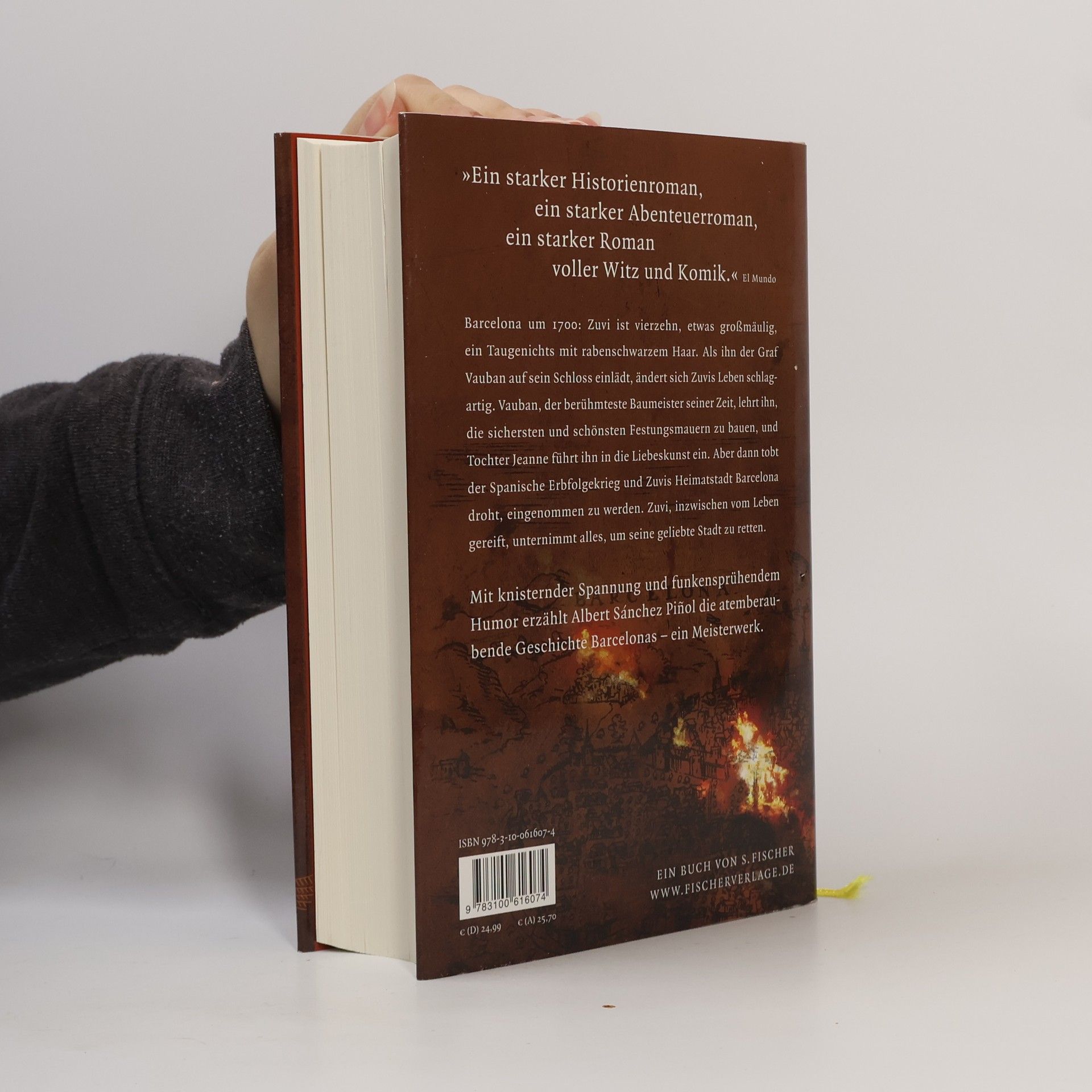 Der große BARCELONA-Roman vom Bestseller-Autor Albert Sánchez PIÑOL Barcelona um 1700: Zuvi ist vierzehn, etwas großmäulig, ein Taugenichts mit rabenschwarzem Haar. Als ihn der Graf Vauban auf sein Schloss einlädt, ändert sich Zuvis Leben schlagartig. Vauban, der berühmteste Baumeister seiner Zeit, lehrt ihn, die sichersten und schönsten Festungsmauern zu bauen, und Tochter Jeanne führt ihn in die Liebeskunst ein. Aber dann tobt der Spanische Erbfolgekrieg und Zuvis Heimatstadt Barcelona droht, eingenommen zu werden. Zuvi, inzwischen vom Leben gereift, unternimmt alles, um seine geliebte Stadt zu retten. Mit knisternder Spannung und funkensprühendem Humor erzählt Albert Sánchez Piñol die atemraubende Geschichte Barcelonas – ein Meisterwerk.