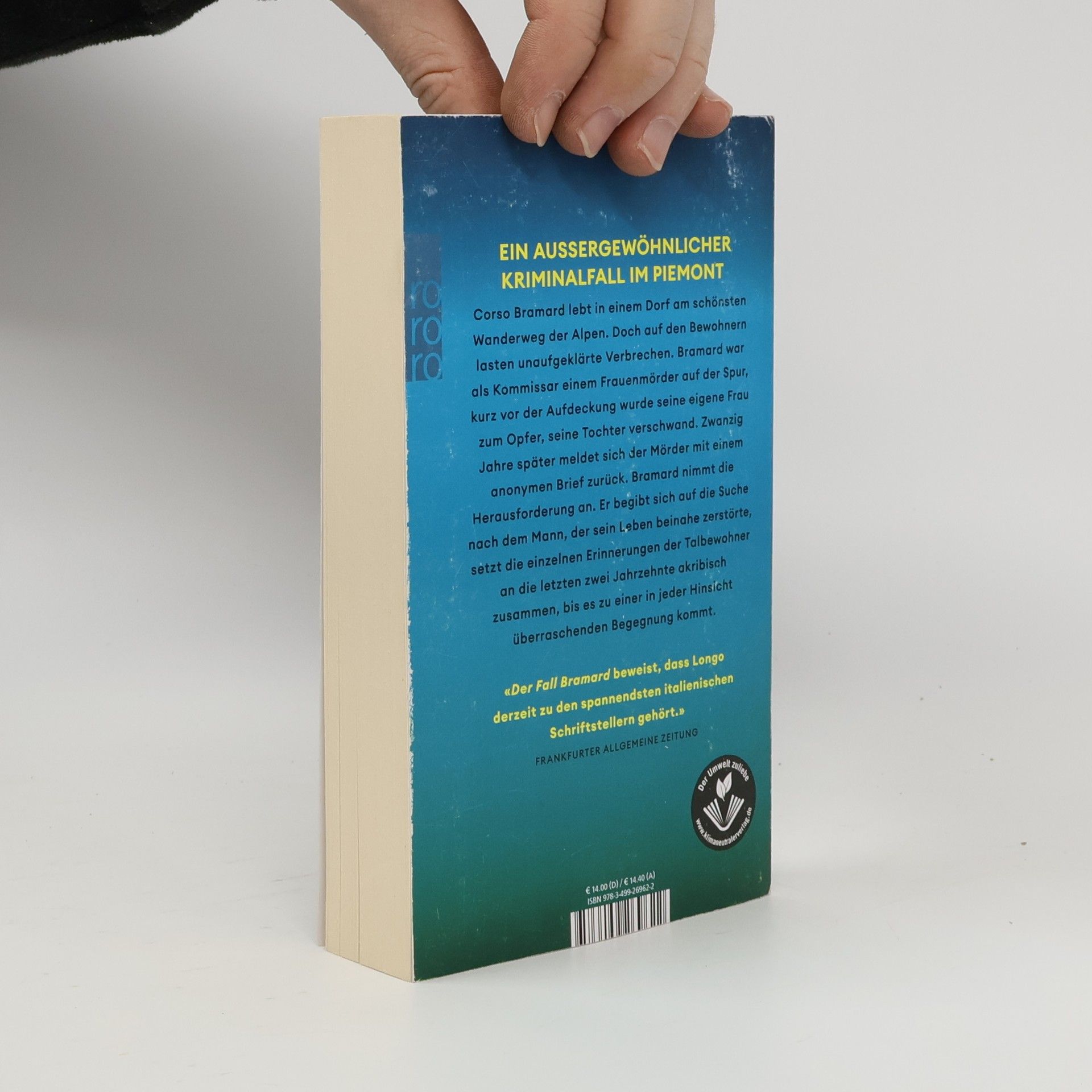 Ein außergewöhnlicher Kriminalfall im Piemont Corso Bramard lebt in einem Dorf am schönsten Wanderweg der Alpen. Doch auf den Bewohnern lasten unaufgeklärte Verbrechen. Bramard war als Kommissar einem Frauenmörder auf der Spur, kurz vor der Aufdeckung wurde seine eigene Frau zum Opfer, seine Tochter verschwand. Zwanzig Jahre später meldet sich der Mörder mit einem anonymen Brief zurück. Bramard nimmt die Herausforderung an. Er begibt sich auf die Suche nach dem Mann, der sein Leben beinahe zerstörte, setzt die einzelnen Erinnerungen der Talbewohner an die letzten zwei Jahrzehnte akribisch zusammen, bis es zu einer in jeder Hinsicht überraschenden Begegnung kommt.