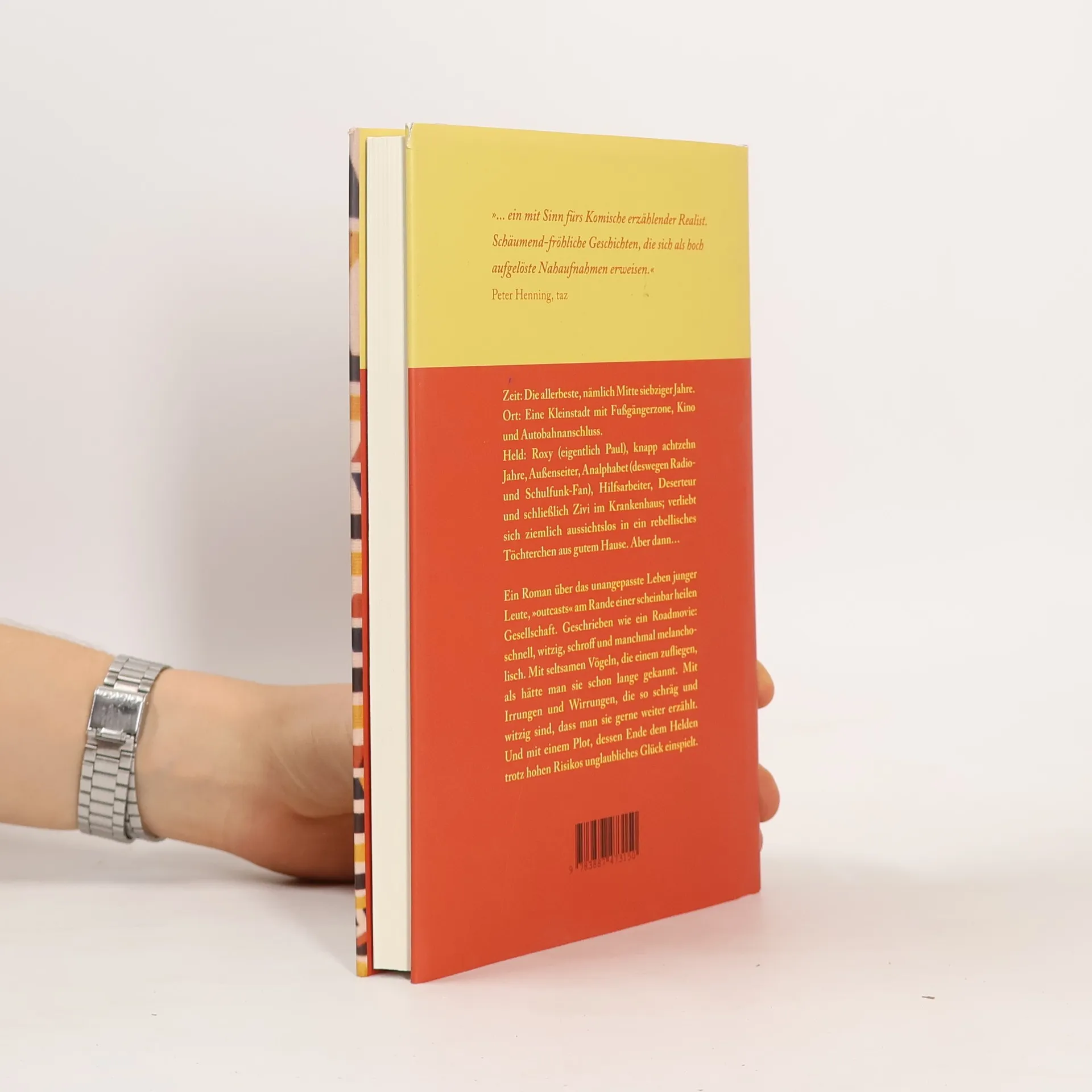 Zeit: Mitte der siebziger Jahre. Ort: Eine Kleinstadt mit Fußgängerzone, Kino und Autobahnanschluss zwischen Köln und Aachen. Held: Roxy (Paul), fast achtzehn, Außenseiter, Analphabet, Hilfsarbeiter, Deserteur, Zivi im Krankenhaus; verliebt in Sonja, Tochter aus gutem Hause. Personal: Sonja, Gymnasiastin, trifft Roxy bei Hausarbeiten über den Röhmputsch, von dem er viel weiß. Herr Kessler, Fabrikant, erklärt Roxy zum Arbeiterdenkmal, entlässt ihn und trifft ihn später im Krankenhaus, angeblich todkrank. Franz Kafka, Autor von 'Die Verwandlung', dient Roxy als Vorlage für seine ersten Schreibübungen. Zippi, Roxy's Mitbewohnerin und Kämpferin für die DDR-Anerkennung. Schuppe, immer pleite, vermietet seinen Balkon an Voyeure. Han, kleine, höfliche Koreanerin, schützt Roxy vor dem Chefarzt. Adamski, der sich an Weihnachten aus Einsamkeit ins Krankenhaus schmuggelt. Weitere Figuren sind Mütter, deren Liebhaber, ein Swimming Pool, eine Milchbar, Studenten und Zigaretten namens Güldenring. Der Roman beleuchtet das unangepasste Leben junger 'outcasts' in einer scheinbar heilen Gesellschaft. Geschrieben wie ein Roadmovie: schnell, witzig, schroff und melancholisch. Mit skurrilen Begegnungen und Geschichten, die so schräg und witzig sind, dass man sie gerne weitererzählt. Der Plot bietet dem Helden trotz Risiken unglaubliches Glück. Achtung: Es macht süchtig!