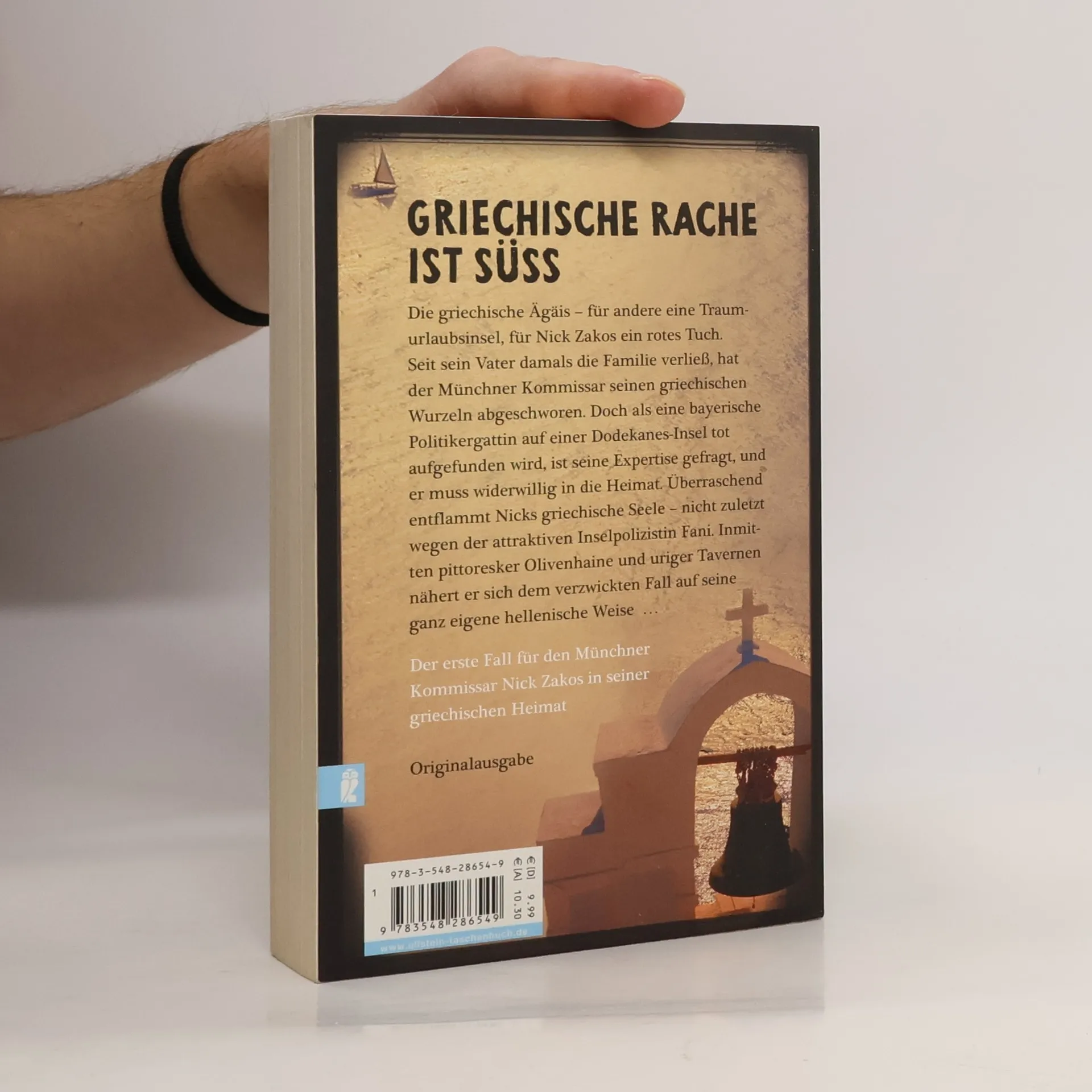 Nick Zakos, Halbgrieche und Star der Münchner Mordkommission, ist urlaubsreif. Doch aus Ferien wird nichts, weil auf einer griechischen Insel die Leiche einer deutschen Urlauberin gefunden wird. Da es sich um die Ehefrau eines ranghohen bayerischen Politikers handelt, wird Nick um Amtshilfe gebeten. Nick ist alles andere als begeistert — Griechenland kann ihm gestohlen bleiben, seit sein Vater die Familie verlassen hat. Doch als er schließlich auf der Dodekanesinsel ankommt, erwacht seine griechische Seele zum Leben — nicht zuletzt wegen der attraktiven Inselpolizistin Fani. Und in genau diese Seele muss er eintauchen, um den äußerst verwickelten Fall zu lösen, denn griechische Rache ist süß ...