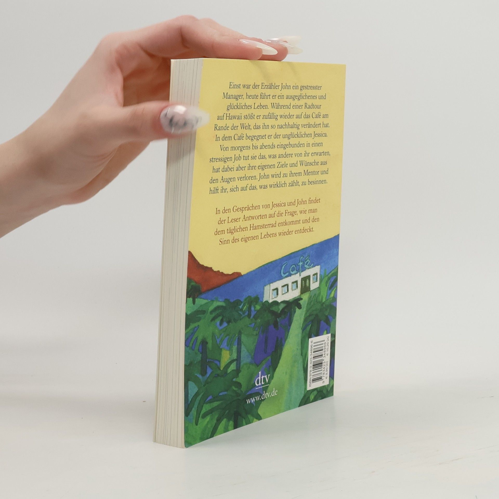 Inspirationen fürs eigene Leben Einst war der Erzähler John ein gestresster Manager, heute führt er ein ausgeglichenes und glückliches Leben. Während einer Radtour auf Hawaii erinnert sich John an den Tag vor zehn Jahren, der sein Leben radikal verändert hat. Damals war er zufällig auf das Café am Rande der Welt gestoßen. Und obwohl er sich an einem völlig anderen Ort befindet, Tausende Kilometer entfernt, sieht er es plötzlich wieder. In dem Café begegnet er Jessica, die unglücklich mit ihrem Leben ist. Eingebunden in ein stressiges Arbeitsleben, tut sie das, was andere von ihr erwarten, hat dabei aber ihre eigenen Ziele und Wünsche aus den Augen verloren. John wird zu ihrem Mentor und hilft ihr, sich auf den Sinn ihres Lebens zu besinnen. In den Gesprächen von Jessica und John findet der Leser Antworten auf die Frage, wie man dem täglichen Hamsterrad entkommt und den Sinn des eigenen Lebens wieder entdeckt. Wunderbar vierfarbig illustriert von Root Leeb.