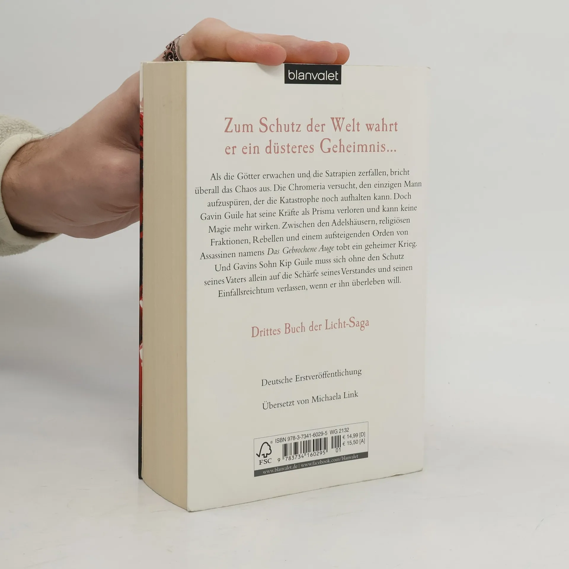Zum Schutz der Welt wahrt er ein düsteres Geheimnis Als die Götter erwachen und die Satrapien zerfallen, bricht überall das Chaos aus. Die Chromeria versucht, den einzigen Mann aufzuspüren, der die Katastrophe noch aufhalten kann. Doch Gavin Guile hat seine Kräfte als Prisma verloren und kann keine Magie mehr wirken. Zwischen den Adelshäusern, religiösen Fraktionen, Rebellen und einem aufsteigenden Orden von Assassinen namens Das Gebrochene Auge tobt ein geheimer Krieg. Und Gavins Sohn Kip Guile muss sich ohne den Schutz seines Vaters allein auf die Schärfe seines Verstandes und seinen Einfallsreichtum verlassen, wenn er überleben will.