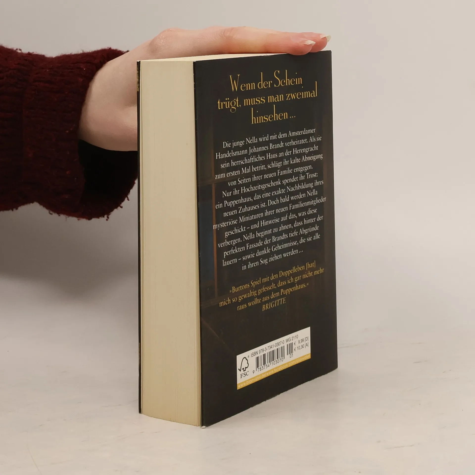 Wenn der Schein trügt, muss man zweimal hinsehen Die junge Nella wird mit dem Amsterdamer Handelsmann Johannes Brandt verheiratet. Als sie sein herrschaftliches Haus an der Herengracht zum ersten Mal betritt, schlägt ihr kalte Abneigung von Seiten ihrer neuen Familie entgegen. Nur ihr Hochzeitsgeschenk spendet ihr Trost: ein Puppenhaus, das eine exakte Nachbildung ihres neuen Zuhauses ist. Doch bald werden Nella mysteriöse kleine Nachbildungen ihrer neuen Familienmitglieder geschickt – und Hinweise auf das, was diese verbergen. Nella beginnt zu ahnen, dass sich hinter der perfekten Fassade der Brandts tiefe Abgründe verbergen – sowie dunkle Geheimnisse, die sie alle in ihren Sog ziehen werden …
