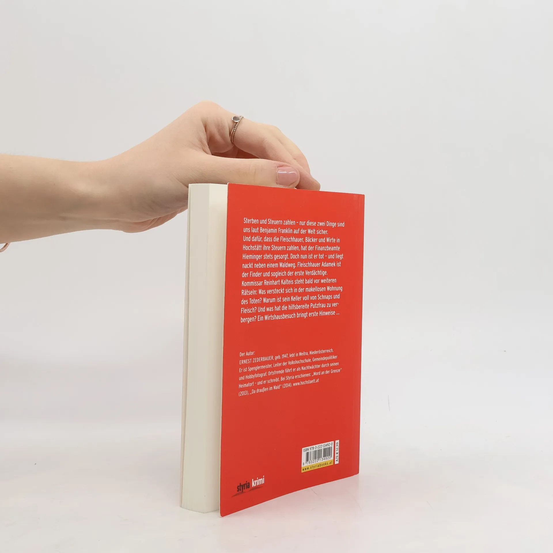 Sterben und Steuern zahlen - nur diese zwei Dinge sind uns laut Benjamin Franklin auf der Welt sicher. Und dafür, dass die Fleischhauer, Bäcker und Wirte in Hochstätt ihre Steuern zahlen, hat der Finanzbeamte Hieminger stets gesorgt. Doch nun ist er tot - und liegt nackt neben einem Waldweg. Fleischhauer Adamek ist der Finder und sogleich der erste Verdächtige. Doch Kommissar Reinhart Kalteis und seine Kollegen stehen bald vor weiteren Rätseln: Was versteckt sich in der makellosen Wohnung des Toten? Warum ist sein Keller voll von Schnaps und Fleisch? Und was hat die hilfsbereite Putzfrau zu verbergen? Ein Wirtshausbesuch bringt erste Hinweise und ein rasanter Showdown kündigt sich an. Ein neuer doppelbödiger Waldviertel-Krimi von Ernest Zederbauer, der seine Leser einmal mehr in die Abgründe des Städtchens Hochstätt entführt.