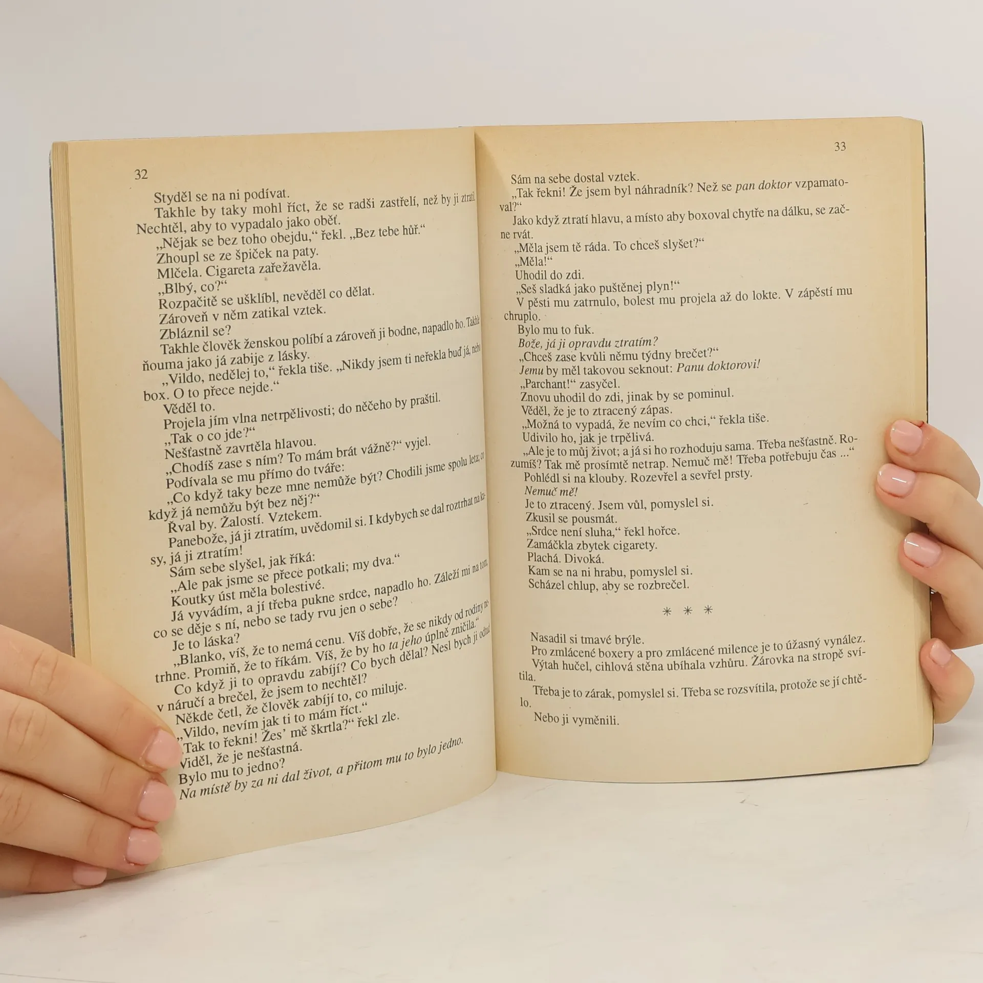 Novelizace filmového scénáře Jaroslava Vokřála a Jaroslava Soukupa. Kniha o rváči s něžným srdcem. Děj se odehrává v polovině třicátých let, kdy si Evropa začíná uvědomovat nebezpečí nacistické hrozby, a kdy politika pronika i do sportu. Hlavní hrdina fiktivního příběhu, šampion v boxu Vilda Jakub, se utkává s němcem Kurtem Schallerem. Nacisté jsou rozhodnuti použít v zájmu vítězství svého mistra i ty nejšpinavější prostředky. Vilda postupně prohlédne jejich hru, nedokáže si ale představit její tragické následky. Soustředí se především na přípravu životního utkání, a zároveň se rozhoduje mezi dvěma svými láskami: nemocniční sestrou Blankou a fatalní ženou, populární filmovou herečkou Emou Gabrielovou.