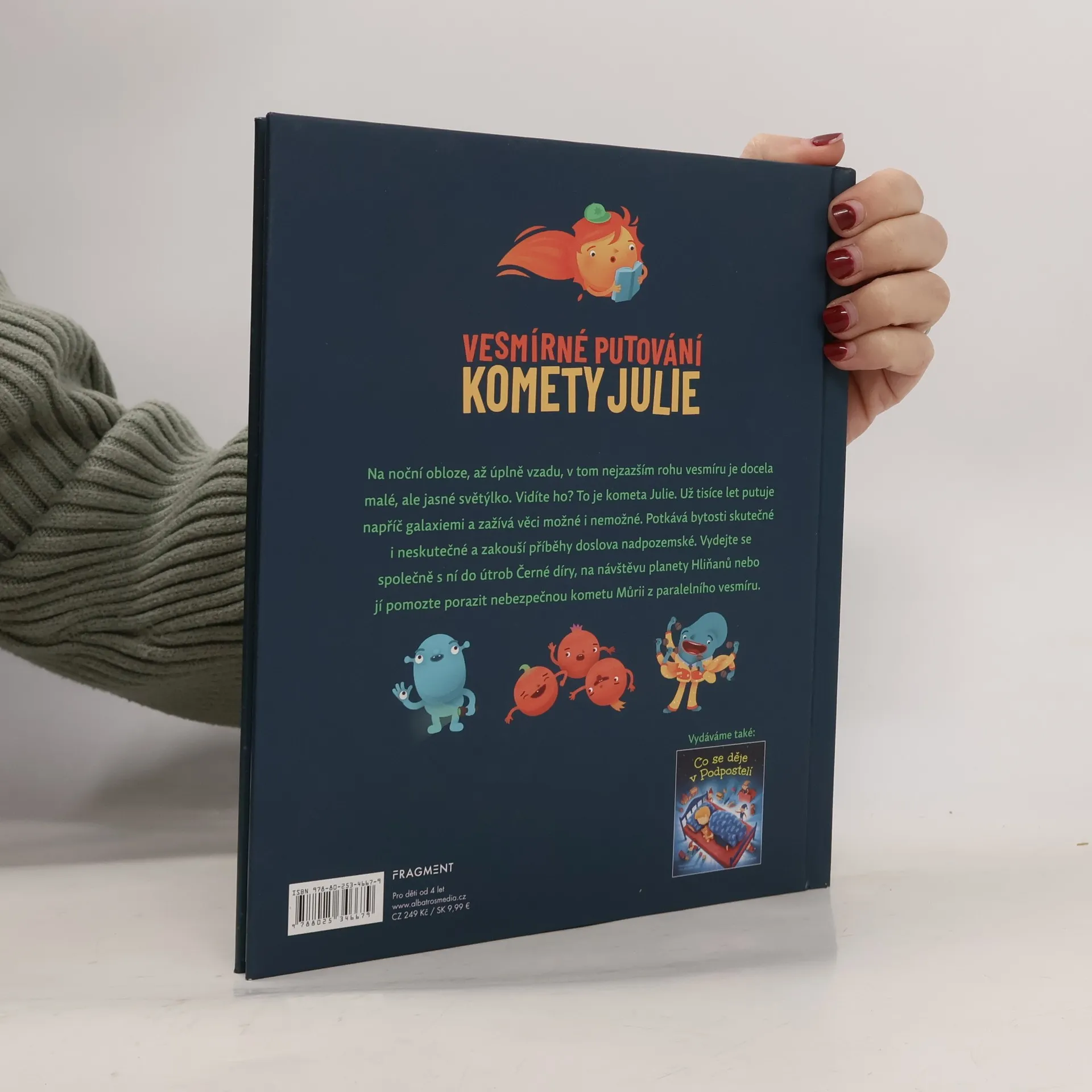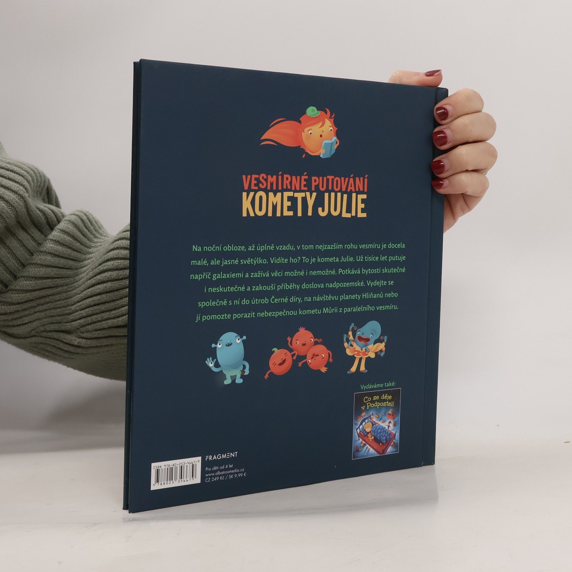 Vesmír je nekonečný stejně jako množství příběhů, které se v něm mohou odehrávat. Přečtěte si jeden z nejlepších! Novinka od autorky titulu Co se děje v Podpostelí. Na noční obloze, až úplně vzadu, v tom nejzazším rohu vesmíru je docela malé, ale jasné světýlko. Vidíte ho? To je kometa Julie. Už tisíce let putuje napříč galaxiemi a zažívá věci možné i nemožné. Potkává bytosti skutečné i neskutečné a zakouší příběhy doslova nadpozemské. Vydejte se společně s ní do útrob Černé díry, na návštěvu planety Hliňanů nebo jí pomozte porazit nebezpečnou kometu Můrii z paralelního vesmíru.