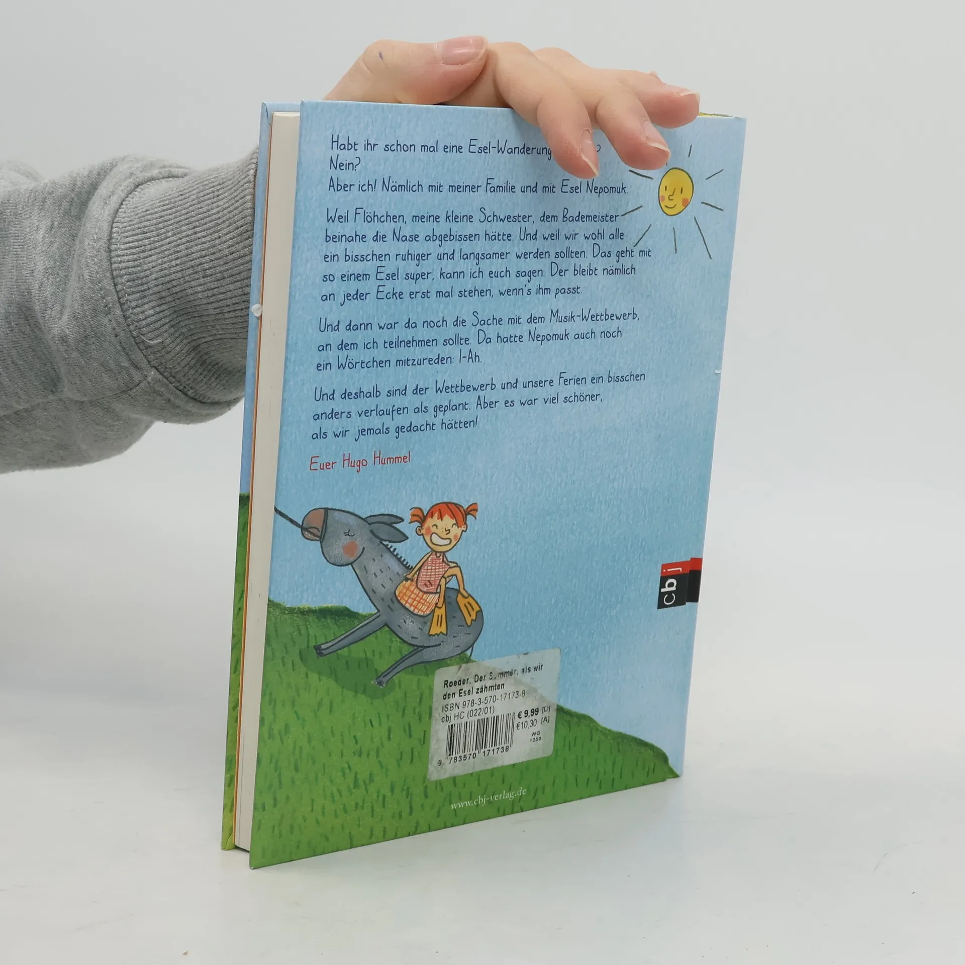 Esel sind störrisch? Wir auch! Familie Hummel – very busy rund um die Uhr – muss raus aus dem Hamster-Rad. Alle Urlaubspläne werden kurzerhand über den Haufen geworfen – zugunsten einer gemeinsamen Wander-Woche. Und zwar in Begleitung eines Esels! Doch ein Esel hat nun mal seinen eigenen Willen. Und so stellt Nepomuk nicht nur die Ferien der Hummels, sondern auch ihr ganzes Leben gründlich auf den Kopf! Ausstattung: Mit s/w Illustrationen