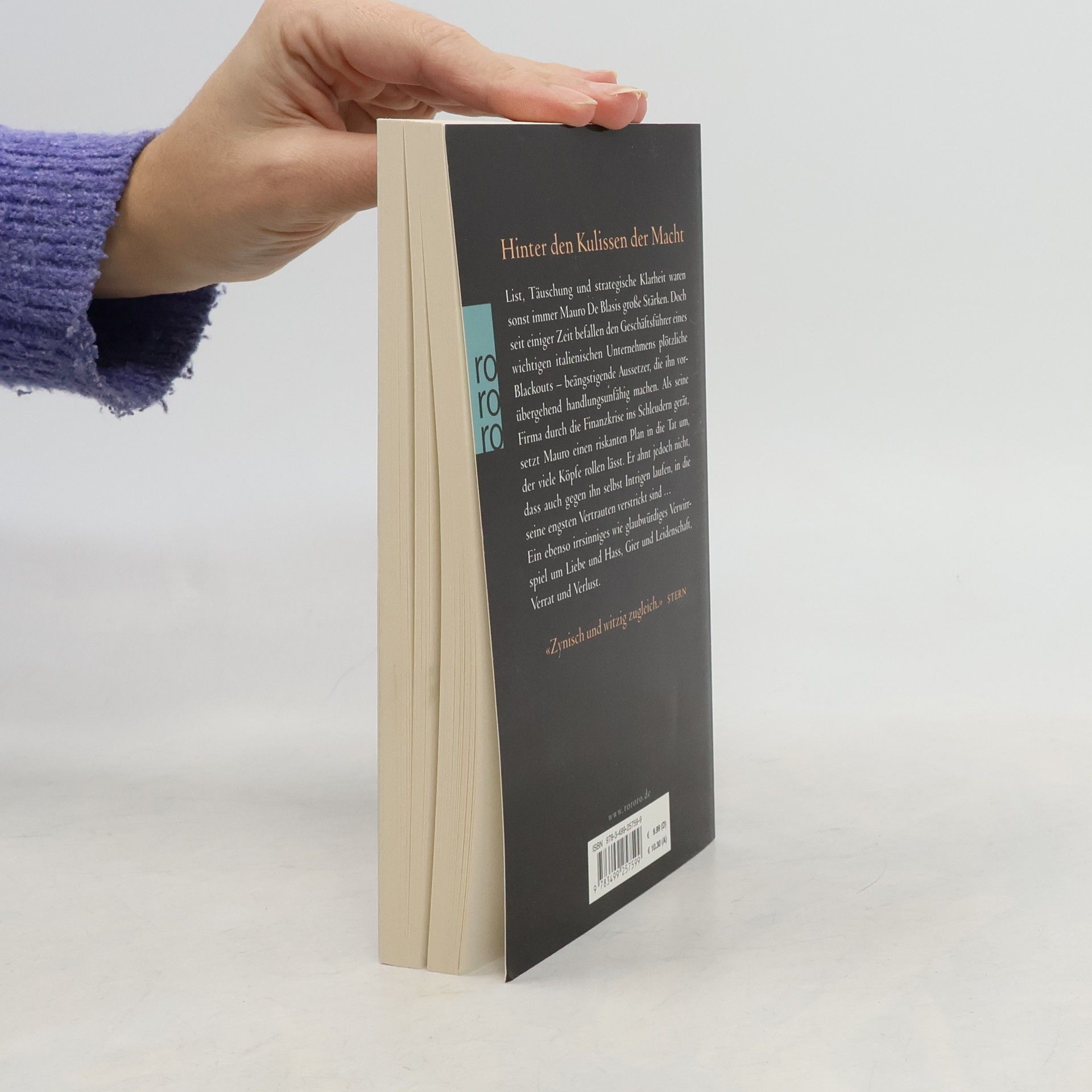 Hinter den Kulissen der Macht.List, Täuschung und strategische Klarheit waren sonst immer Mauro De Blasis große Stärken. Doch seit einiger Zeit befallen den Geschäftsführer eines wichtigen italienischen Unternehmens plötzliche Blackouts – beängstigende Aussetzer, die ihn vorübergehend handlungsunfähig machen. Als seine Firma durch die Finanzkrise ins Schleudern gerät, setzt Mauro einen riskanten Plan in die Tat um, der viele Köpfe rollen lässt. Er ahnt jedoch nicht, dass auch gegen ihn selbst Intrigen laufen, in die seine engsten Vertrauten verstrickt sind …Ein ebenso irrsinniges wie glaubwürdiges Verwirrspiel um Liebe und Hass, Leidenschaft und Gier, Verrat und Verlust.