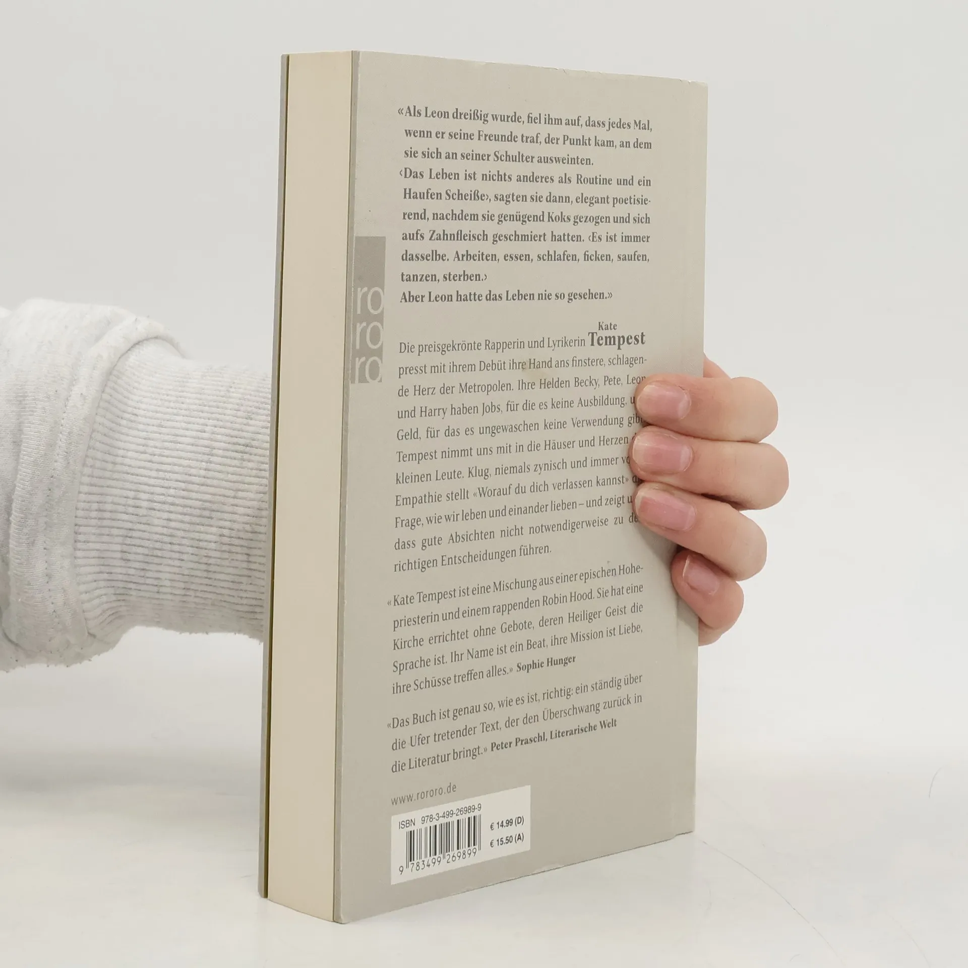 Mit diesem Debüt (veröffentlicht 2016 unter dem damaligen Namen Kate Tempest) presst Kae Tempest die Hand ans finstere, schlagende Herz der Metropolen, das im allesüberdauernden Takt von Drogen, Begehren und Freundschaft schlägt. Die Helden des Romans, Becky, Pete, Leon und Harry, haben Jobs, für die es keine Ausbildung und Geld, für das es ungewaschen keine Verwendung gibt. Sie müssen raus, raus aus London – und kommen doch nicht davon los. Tempest nimmt uns mit in die Häuser und Herzen der kleinen Leute, in ihre Familien und zeigt uns Momente voller Schönheit, Enttäuschung, Ehrgeiz und Scheitern. Klug, niemals zynisch und immer voller Empathie stellt «Worauf du dich verlassen kannst» die Frage, wie wir leben und einander lieben – und zeigt uns, dass gute Absichten nicht notwendigerweise zu den richtigen Entscheidungen führen.