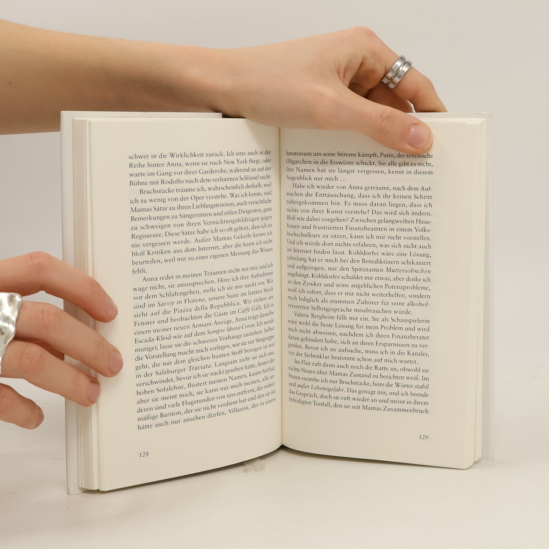 Die Mutter des Icherzählers ist eine erfolgreiche Anwältin, die ihren Sohn unterdrückt. Sie führt die medienwirksamen Prozesse, er darf sich mit obskuren Klienten abmühen. Ohne Vater aufgewachsen, in Internaten erzogen, spielt er in der Kanzlei seiner Mutter eine inferiore Rolle. Erst als er sich ebenfalls auf die Welt der opernbesessenen Mutter einlässt, gelingt ihm ein Befreiungsschlag. Er verliebt sich in eine Choristin, verehrt Anna Netrebko und setzt der Tenorverehrung der Mutter einen grandiosen Sopran entgegen.