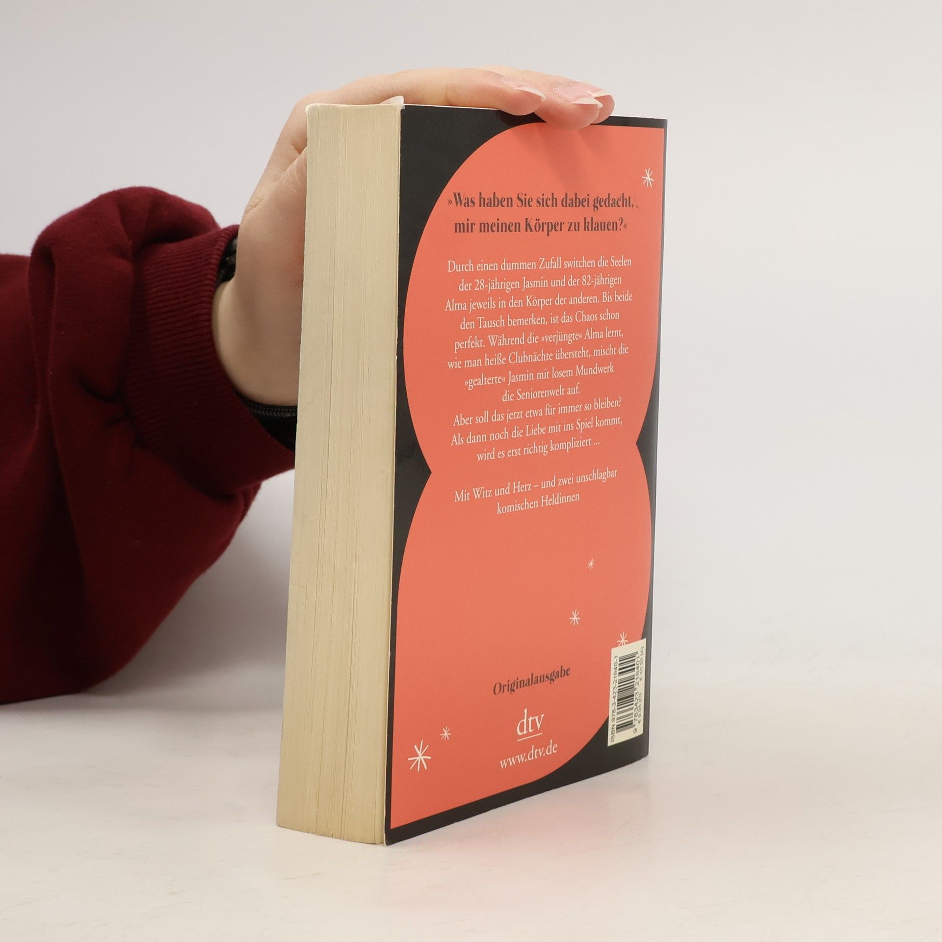 »Was haben Sie sich dabei gedacht, mir meinen Körper zu klauen?« Bei einem Zusammenprall in der Straßenbahn switchen die Seelen der 28-jährigen Jasmin und der 82-jährigen Alma jeweils in den Körper der anderen. Bis beide den Tausch bemerken, ist das Chaos schon perfekt. Notgedrungen versuchen sie erst einmal, das Beste daraus zu machen. Während die »verjüngte« Alma lernt, wie man lange, heiße Clubnächte übersteht, mischt die »gealterte« Jasmin in schwarzer Motorradkluft und mit losem Mundwerk die Seniorenwelt auf. Aber soll das jetzt etwa für immer so bleiben? Als dann noch die Liebe ins Spiel kommt, wird es erst richtig kompliziert ...
