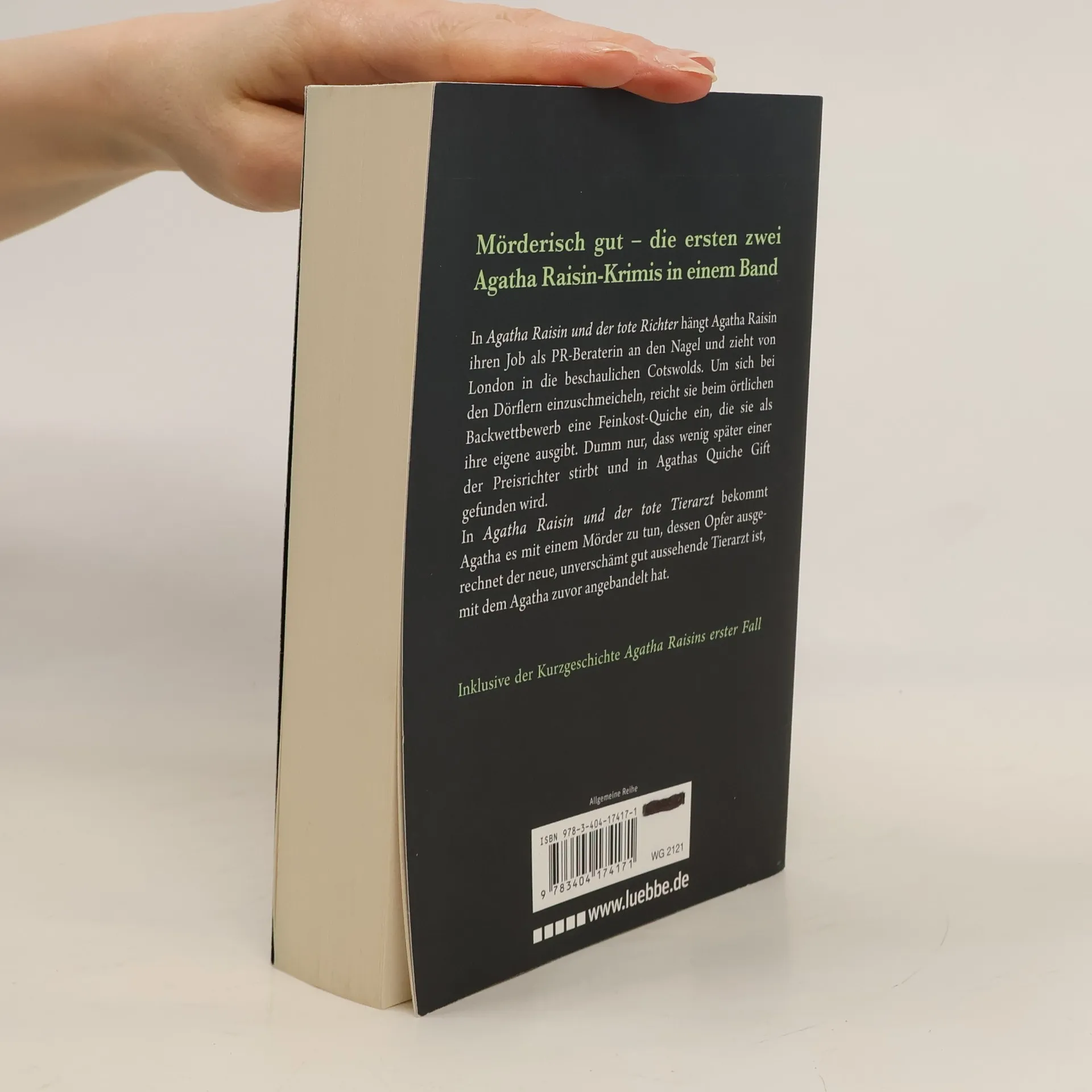 MÖRDERISCH GUT - DIE ERSTEN ZWEI AGATHA RAISIN-ROMANE IN EINEM BAND INKLUSIVE DER KURZGESCHICHTE AGATHA RAISINS ERSTER FALL In M. C. Beatons Heimat Großbritannien hat ihre eigenwillige Detektivin Agatha Raisin längst Kultstatus erreicht. Im 1. Band der Serie Agatha Raisin und der tote Richter hängt Agatha ihren Job als PR-Beraterin an den Nagel und zieht von London in die beschaulichen Cotswolds. Um sich bei den Dörflern einzuschmeicheln, reicht sie beim örtlichen Backwettbewerb eine Feinkost-Quiche ein, die sie als ihre eigene ausgibt. Dumm nur, dass wenig später einer der Preisrichter stirbt und in Agathas Quiche Gift gefunden wird. In Band 2 Agatha Raisin und der tote Tierarzt bekommt Agatha es mit einem Mörder zu tun, dessen Opfer ausgerechnet der neue, unverschämt gut aussehende Tierarzt ist, mit dem Agatha zuvor angebandelt hat.