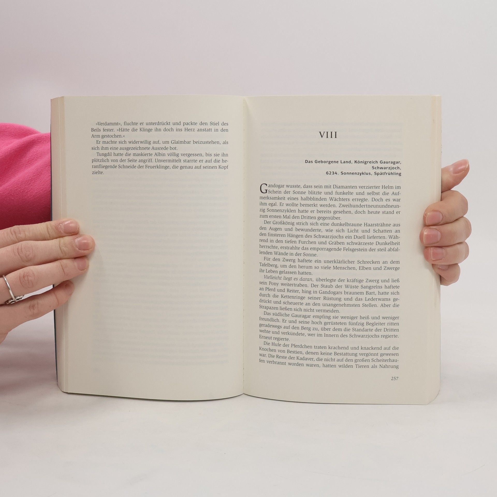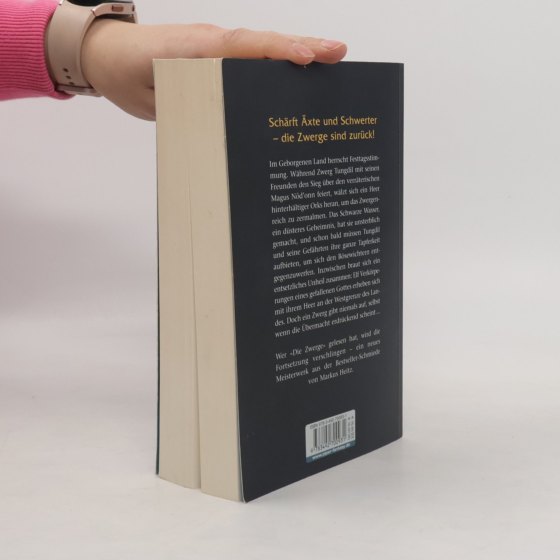 Im Geborgenen Land herrscht Festtagsstimmung. Während Zwerg Tungdil mit seinen Freunden den Sieg über den verräterischen Magus Nôd'onn feiert, wälzt sich ein Heer hinterhältiger Orks heran, um das Zwergenreich zu zermalmen. Das Schwarze Wasser, ein düsteres Geheimnis, hat sie unsterblich gemacht, und schon bald müssen Tungdil und seine Gefährten ihre ganze Tapferkeit aufbieten, um sich den Bösewichtern entgegenzuwerfen. Inzwischen braut sich ein entsetzliches Unheil zusammen: Elf Verkörperungen des Gottes des Bösen stehen mit ihrem Heer an der Westgrenze des Landes. Doch ein Zwerg gibt seinen Besitz erst auf, wenn die letzte Axt geschwungen ist … – Wer »Die Zwerge« gelesen hat, wird die Fortsetzung verschlingen – ein neues Meisterwerk aus der Bestsellerschmiede von Markus Heitz.