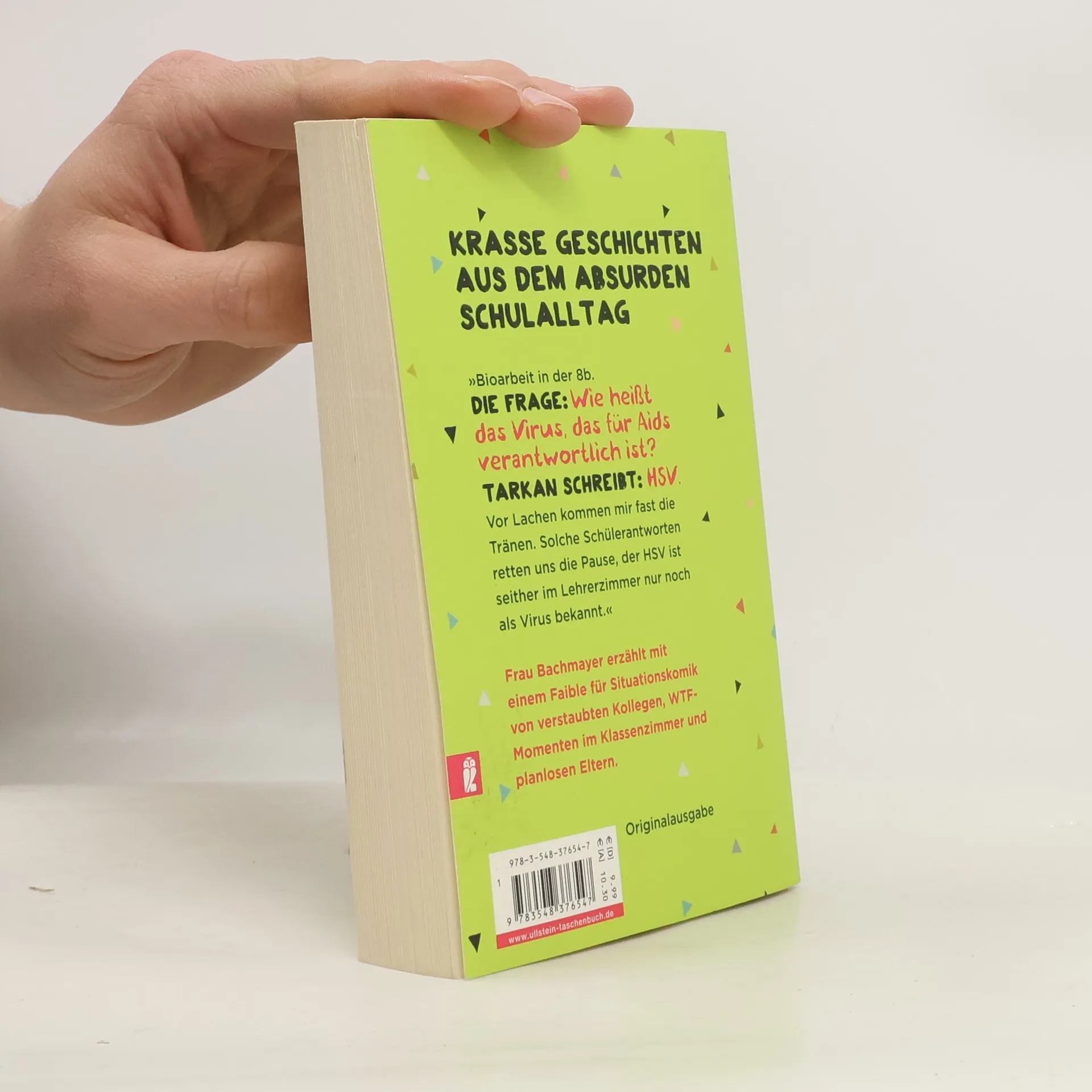 »Was wollt ihr denn mal werden?« — »Hartz IV. Vom Amt lebt sich bestens! Ich sprech da aus Erfahrung«, sagt Victor und grinst frech. Der Rest der Klasse ist sofort angestachelt: »Was geben Sie Hausaufgaben auf? Bringt doch nix.« — »Und wieso ham wir freitags in den letzten beiden Stunden noch Unterricht? Lassma bisschen mit dem Handy daddeln und chillen.« Ich dachte, das ist eine Realschulklasse, dabei studieren die jetzt schon auf Hartz IV. Frau Bachmayer erzählt mit einem Faible für Situationskomik von verstaubten Kollegen, WTF-Momenten im Klassenzimmer und planlosen Eltern. Wahre Geschichten aus dem völlig abgedrehten Schulalltag.