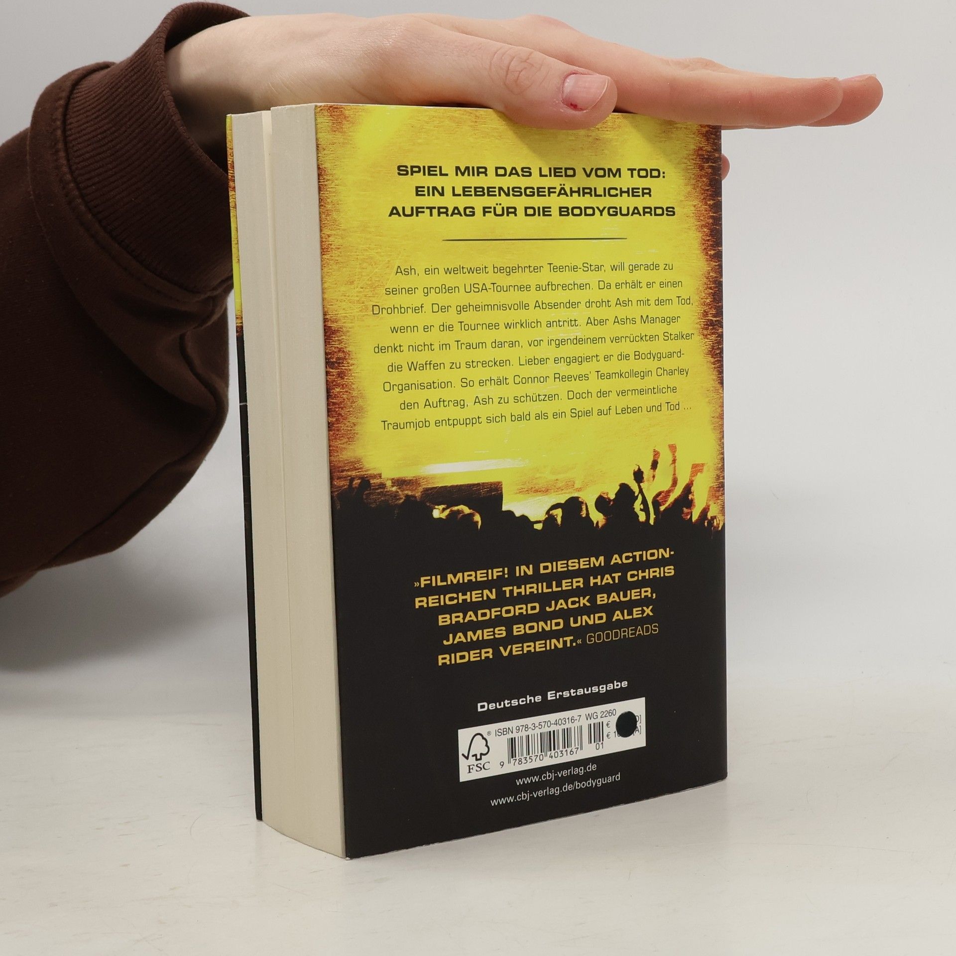 Connors beste Freundin und ihr gefährlichster Einsatz Ash, ein weltweit begehrter Teenie- Star, will gerade zu seiner großen USA-Tournee aufbrechen. Da erhält er einen Drohbrief. Der geheimnisvolle Absender droht Ash mit dem Tod, wenn er die Tournee wirklich antritt. Aber Ashs Manager denkt nicht im Traum daran, vor irgendeinem verrückten Stalker die Waffen zu strecken. Lieber engagiert er die Bodyguard-Organisation. So erhält Connor Reeves' Teamkollegin Charley den Auftrag, Ash zu schützen. Doch als unerwartet ihr Inkognito auffliegt, geht es plötzlich um Leben und Tod … Erfolgsgarant Chris Bradford liefert mit „Bodyguard“ kugelsichere Action kombiniert mit explosiven Showdowns.