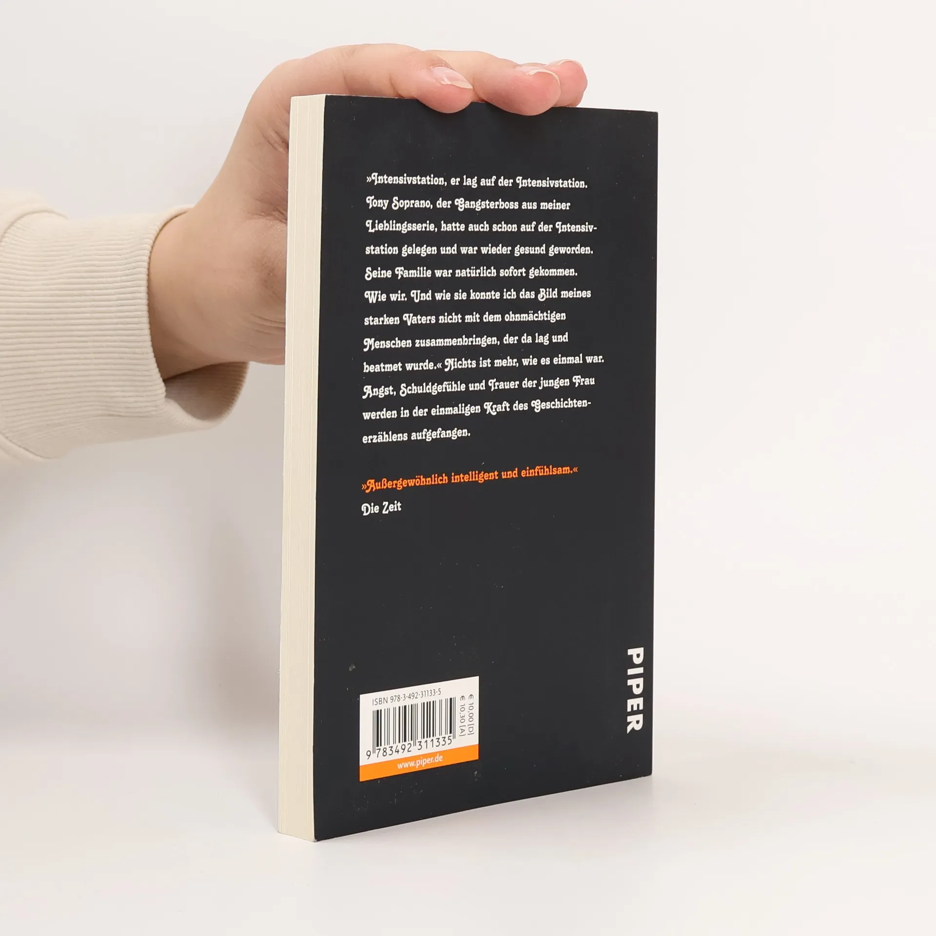 Intensivstation, mein Vater lag auf der Intensivstation. Tony Soprano, der Gangsterboss aus meiner Lieblingsserie, lag auch schon auf der Intensivstation und wurde wieder gesund. Seine Familie, Meadow, Anthony Junior, Carmella, sie alle waren sofort gekommen. Wie wir. Als Antonia Baum erfährt, dass ihr Vater lebensgefährlich verunglückt ist, ist sie wie gelähmt. Wie kann es sein, dass es den Menschen, mit dem sie noch zwei Tage zuvor im Restaurant gesessen hat, so nicht mehr gibt? Sie erzählt von Angst, Schuldgefühlen und Tod und davon, warum in ausweglosen Situationen nur Geschichten helfen.