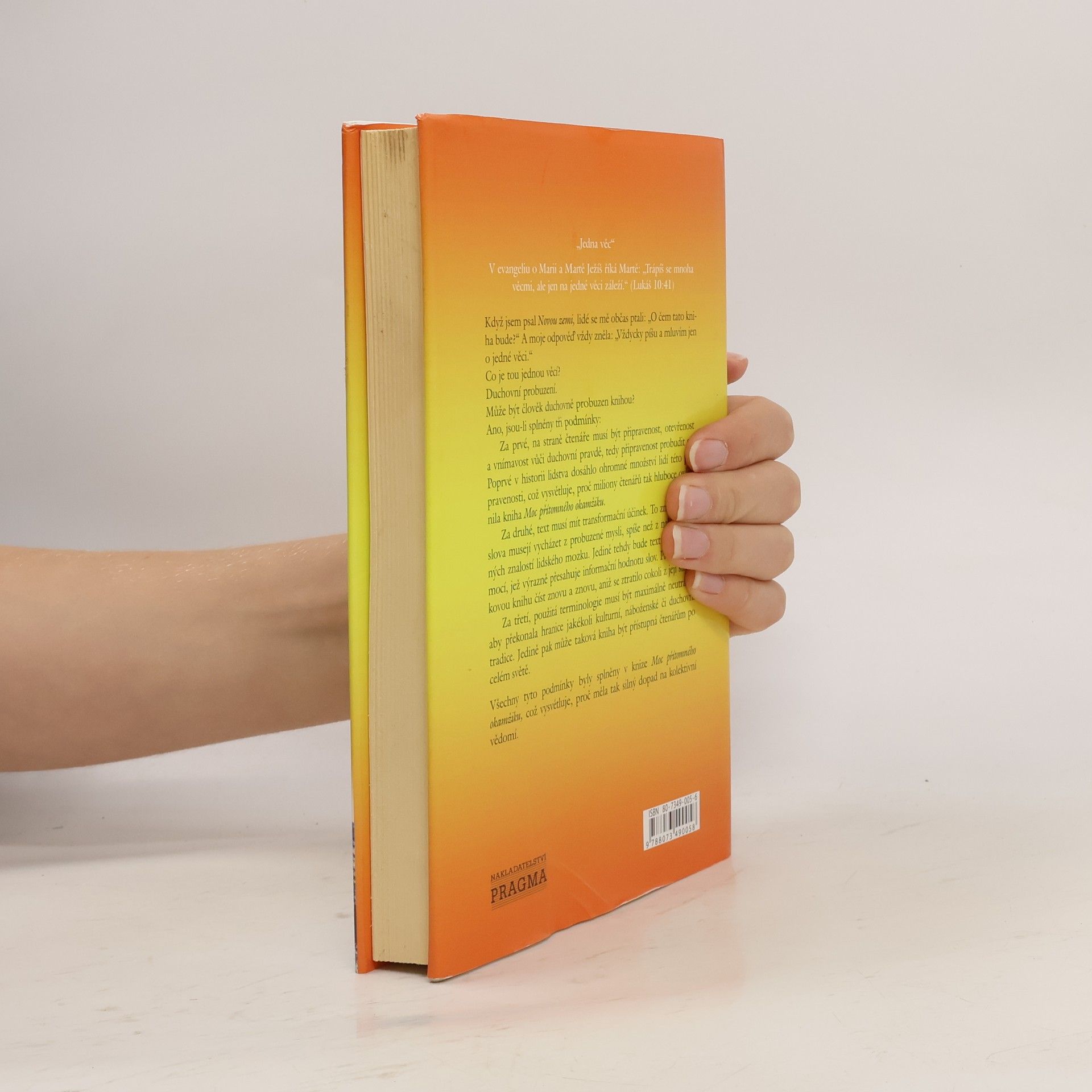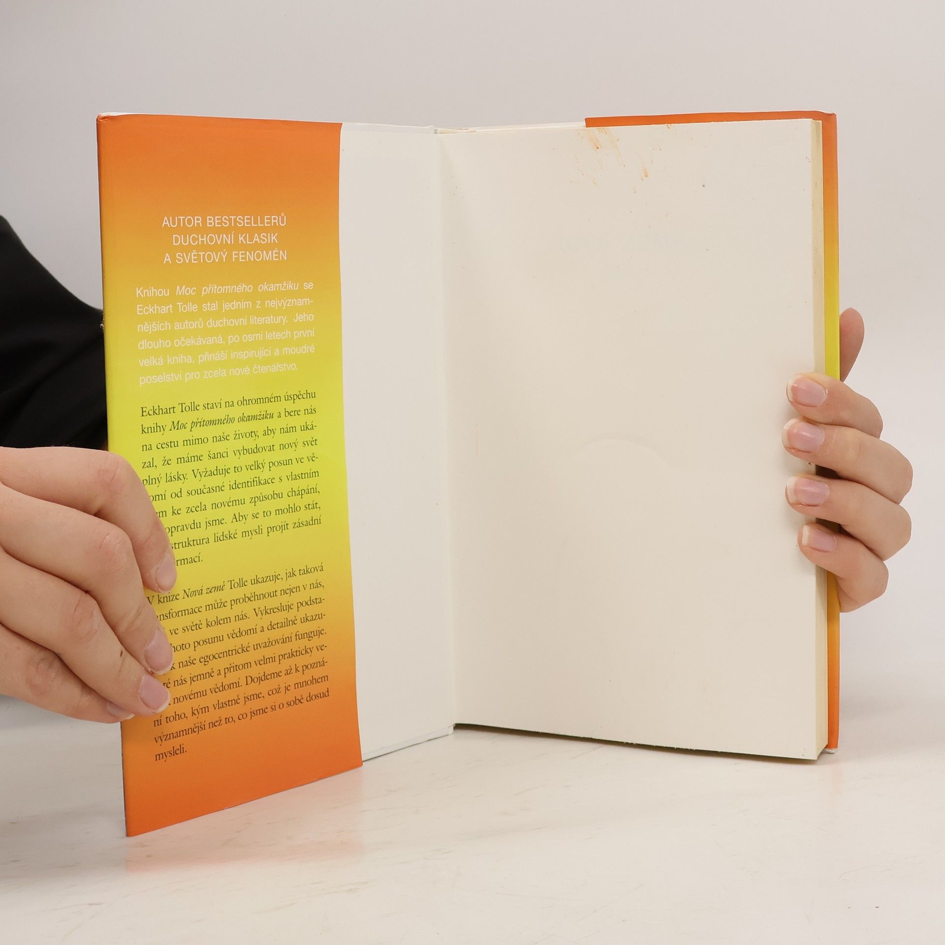 Eckhart Tolle staví na obrovském úspěchu knihy Moc přítomného okamžiku a bere nás na cestu mimo naše životy, aby nám ukázal, že máme šanci vybudovat nový svět plný lásky. Vyžaduje to velký posun ve vědomí od současné identifikace s naším egem ke zcela novému způsobu vnímání toho, kdo jsme. Aby se to mohlo stát, musí struktura lidské mysli projít zásadní transformací. V této nové knize Tolle ukazuje, jak taková transformace může proběhnout nejen v nás, ale i ve světě kolem nás. Tím, že vykresluje podstatu tohoto posunu vědomí, Tolle detailně ukazuje, jak naše egoistické uvažování funguje. Poté nás jemně a pomocí velmi praktických termínů vede k novému vědomí. Dojdeme až k poznání toho, kým vlastně jsme, což je mnohem významnější než to, co jsme si dosud mysleli.
