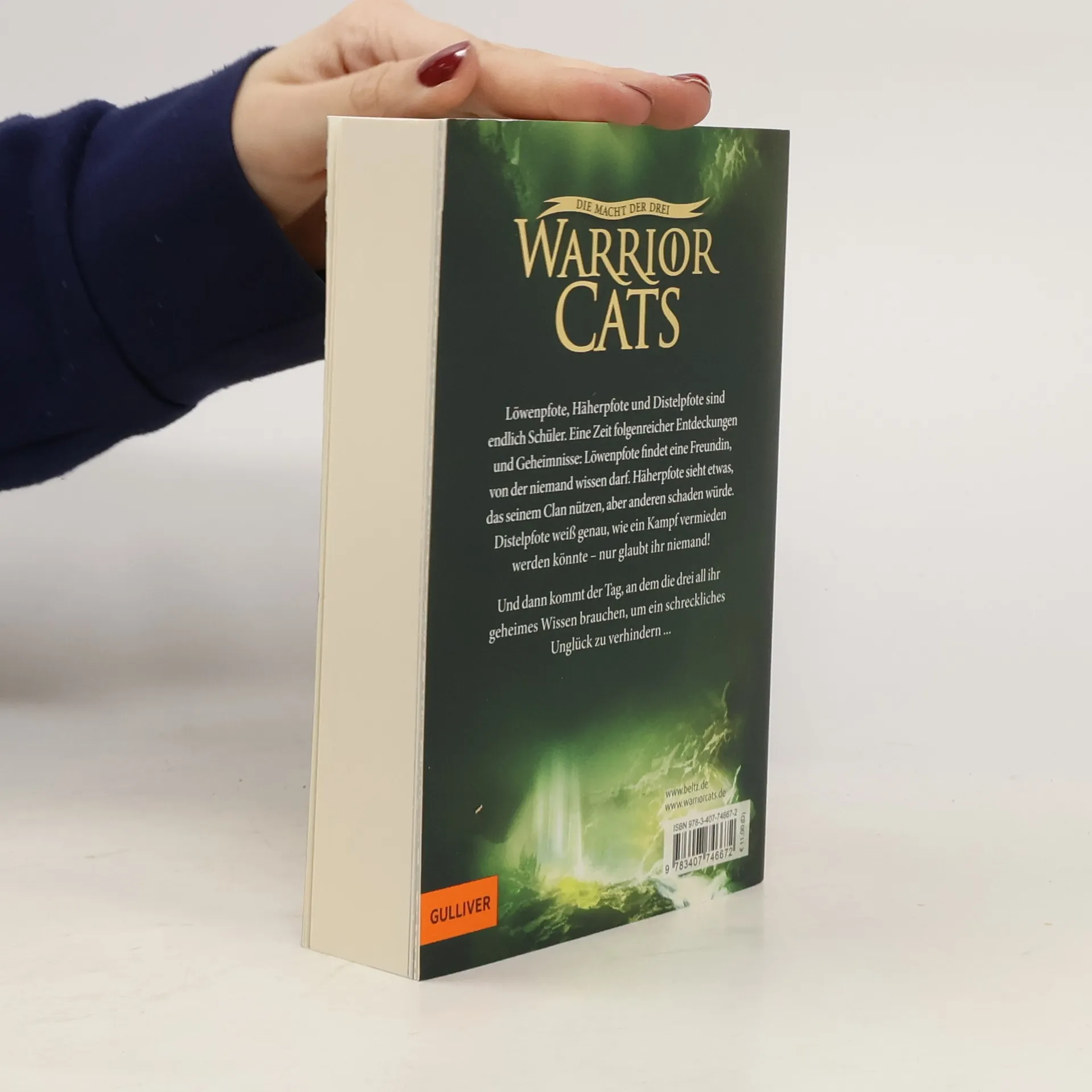 Bilder füllten Häherpfotes Kopf: der dunkle Gang, das tosende Wasser, der Schock, als die Welle ihn traf und mit sich riss, wie ein Blatt im Sturm ... Häherpfote, Löwenpfote und Distelpfote sind endlich Schüler: Eine Zeit voller folgenreicher Entdeckungen und gefährlicher Geheimnisse beginnt. Löwenpfote findet eine Freundin, von der niemand wissen darf. Häherpfote sieht etwas, das seinem Clan nützen, aber anderen schaden würde. Und Distelpfote weiß genau, wie ein Kampf vermieden werden könnte – wenn ihr nur jemand glauben würde! Doch dann kommt der Tag, an dem die drei all ihr geheimes Wissen brauchen, um ein schreckliches Unglück zu verhindern.