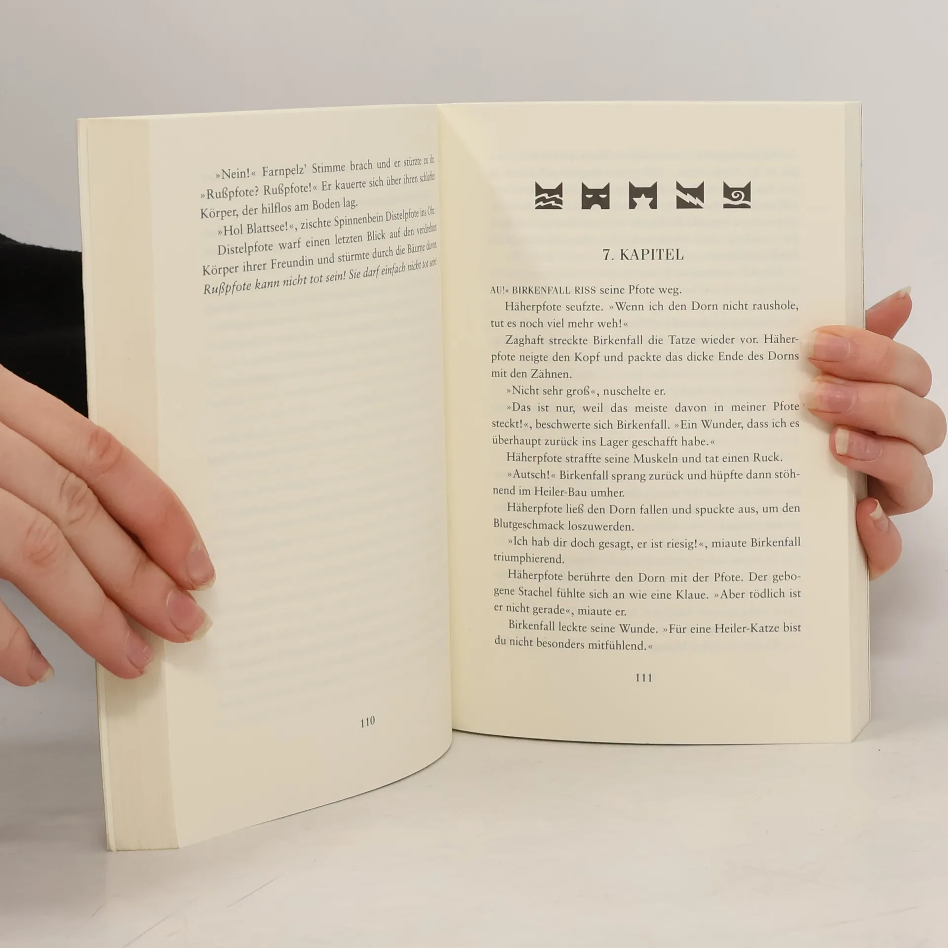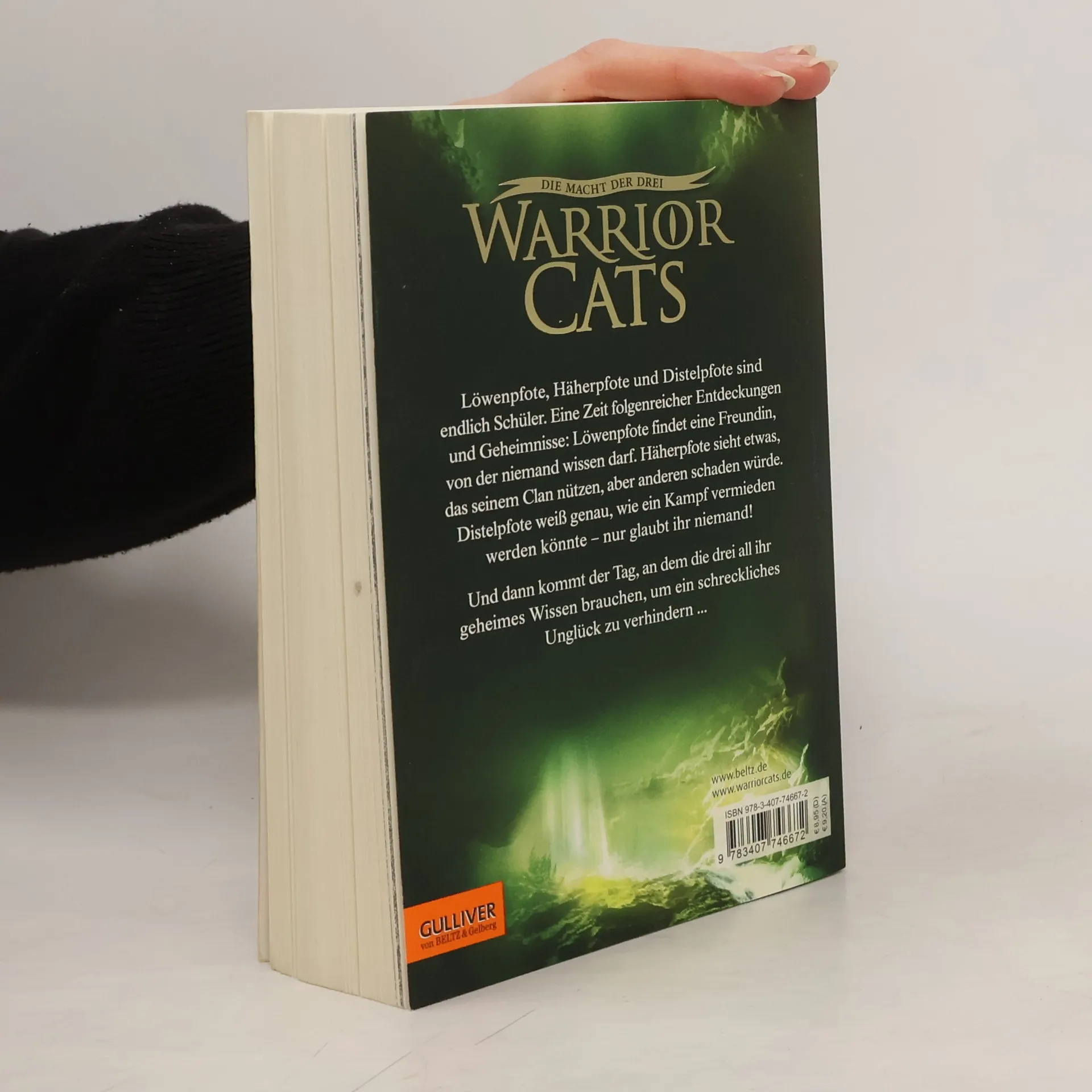 Bilder füllten Häherpfotes Kopf: der dunkle Gang, das tosende Wasser, der Schock, als die Welle ihn traf und mit sich riss, wie ein Blatt im Sturm ... Häherpfote, Löwenpfote und Distelpfote sind endlich Schüler: Eine Zeit voller folgenreicher Entdeckungen und gefährlicher Geheimnisse beginnt. Löwenpfote findet eine Freundin, von der niemand wissen darf. Häherpfote sieht etwas, das seinem Clan nützen, aber anderen schaden würde. Und Distelpfote weiß genau, wie ein Kampf vermieden werden könnte – wenn ihr nur jemand glauben würde! Doch dann kommt der Tag, an dem die drei all ihr geheimes Wissen brauchen, um ein schreckliches Unglück zu verhindern.