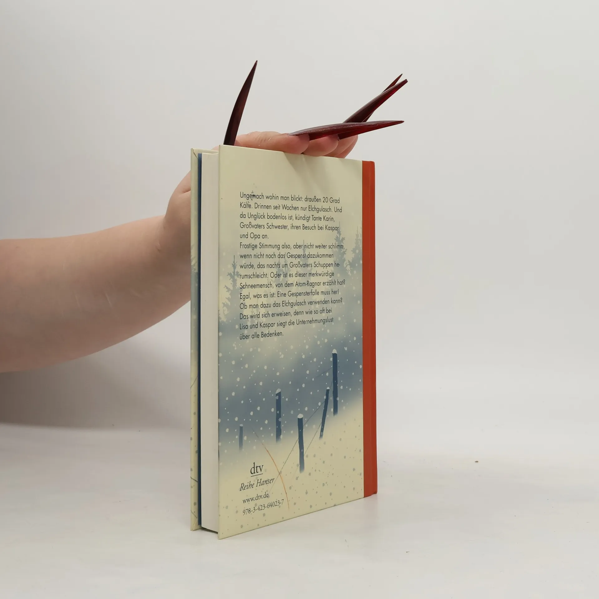 Kaspar und Opa sind zurück! Und bekommen Besuch. Wenn Kaspar und Opa zusammen ihre Holzpferdchen schnitzen und sie im kleinen Dorfladen verkaufen, bekommt Opa seinen Schnupftabak und Kaspar seine Würstchen, so war es immer, und das ist gut. In diesem Winter aber kündigt sich Besuch an: Tante Karin kommt aus Stockholm, und nichts ist mehr, wie es war. Opas Kopf fühlt sich schon ganz schwummerig an beim Gedanken an Karin, und auch Kaspar vermisst die gemütliche Zweisamkeit. Kann man die Tante nicht mit dem Schneemenschen verscheuchen, vor dem sogar die schrullige Frau Åhman Angst hat?